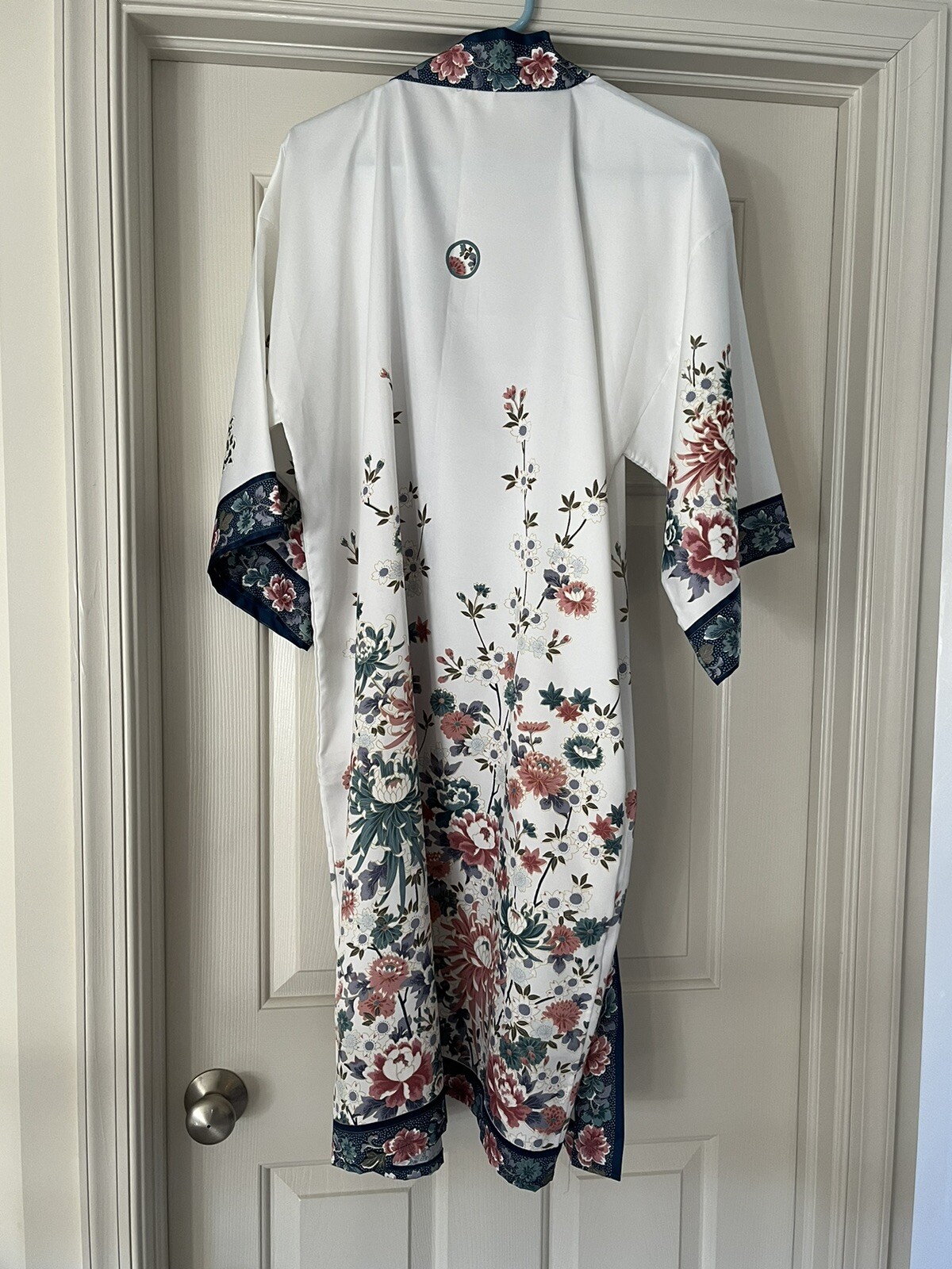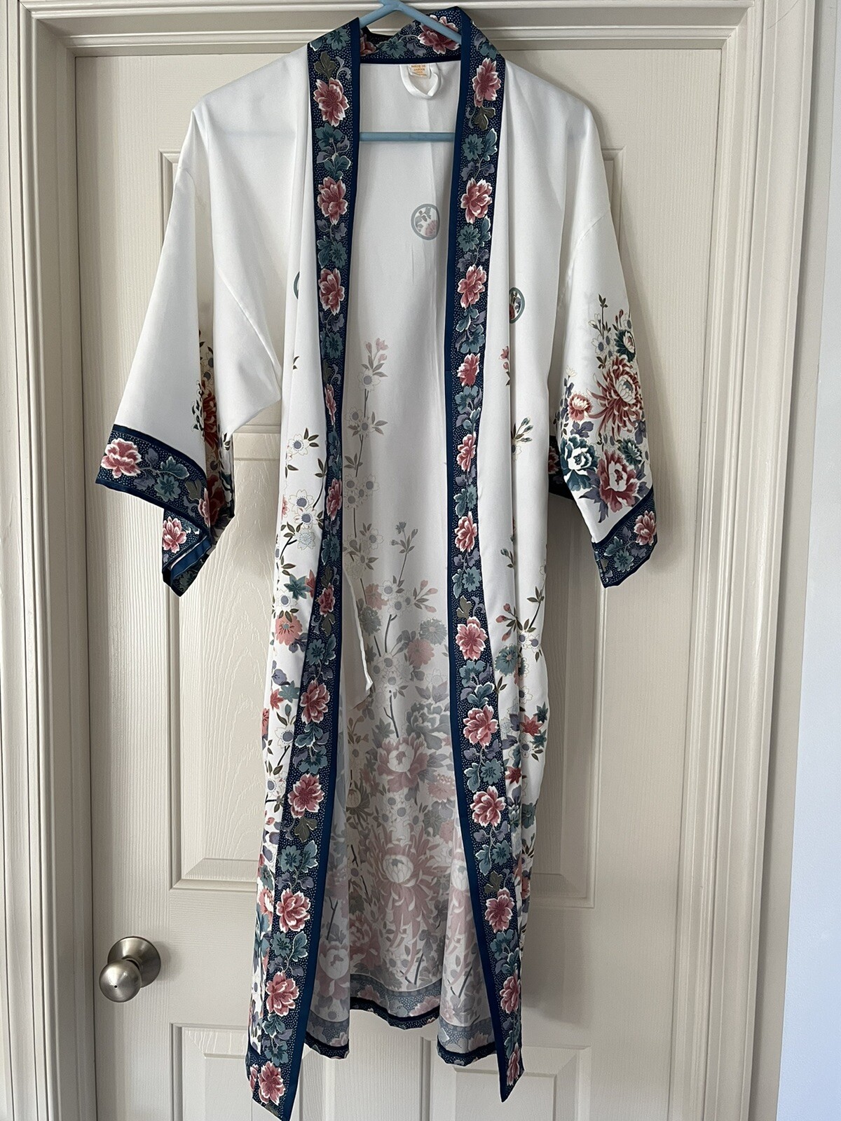 как выглядит Japanese Robe Polyester Blue Purple Pink Floral Japan w/ Belt фото