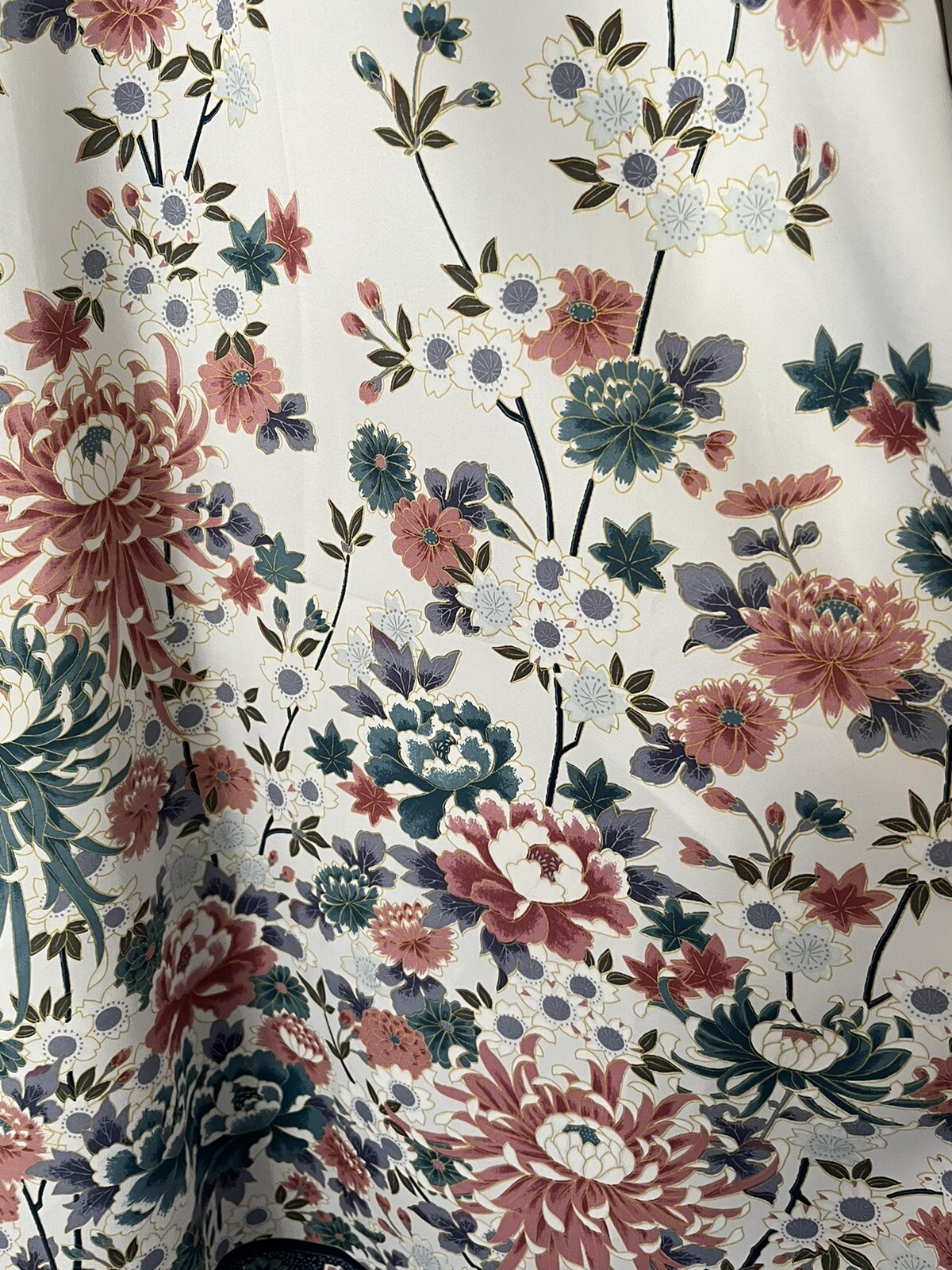 Japanese Robe Polyester Blue Purple Pink Floral Japan w/ Belt