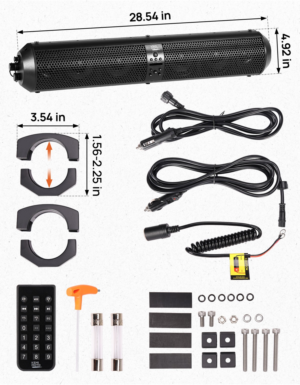 • KEMIMOTO Universal Roll Bar 28'' UTV ATV Sound Bar Speaker Marine Audio System