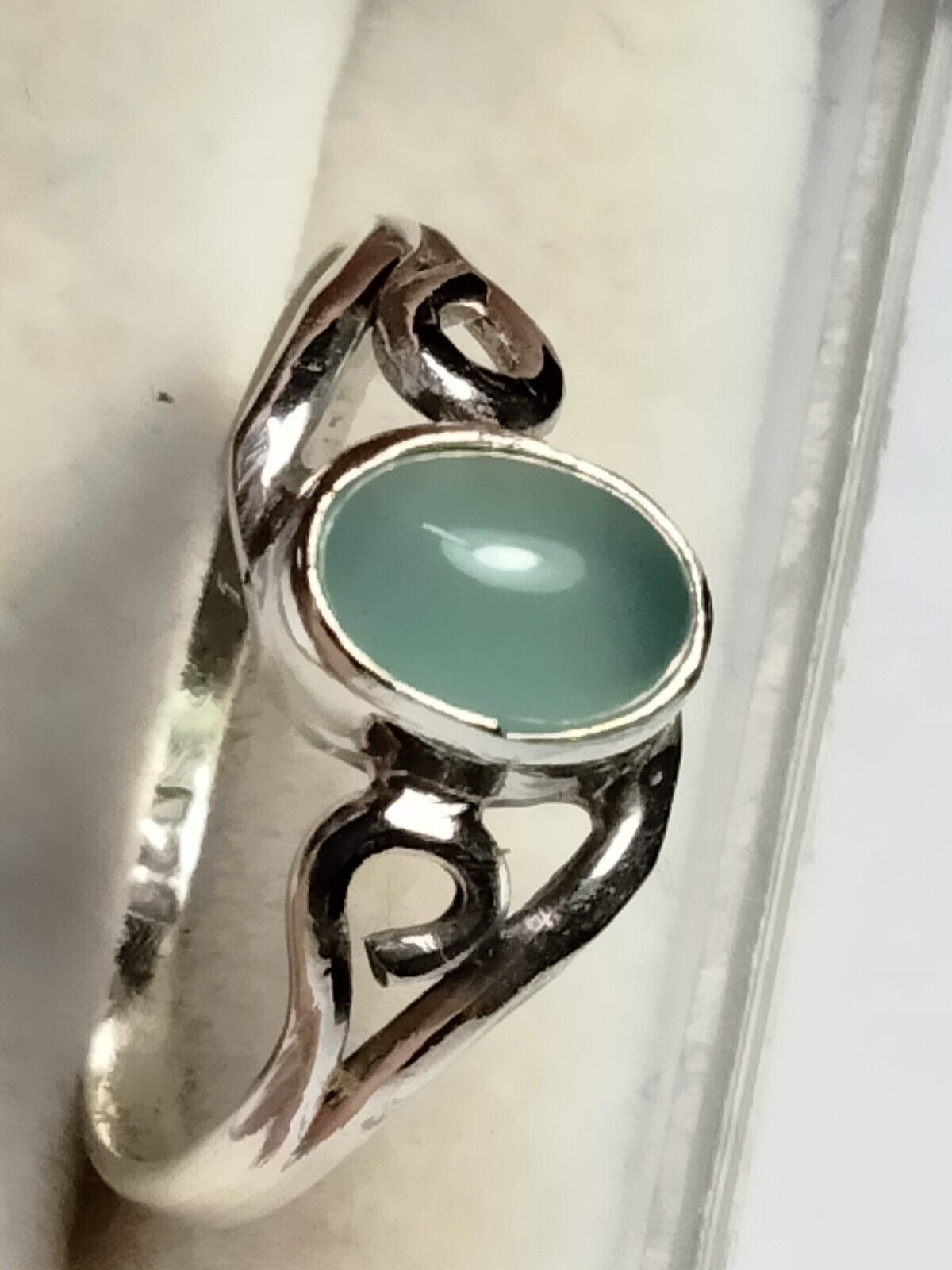 CUTE SEA BLUISH GREEN CHALCEDONY IN STERLING SILVER.925 RING SIZE 7.0
