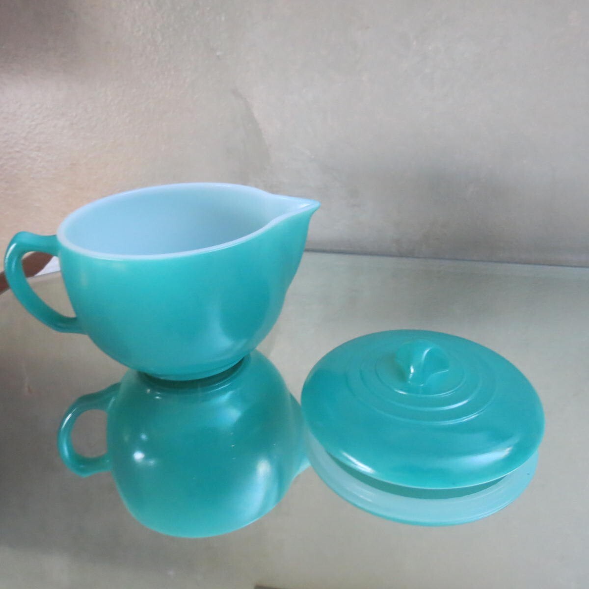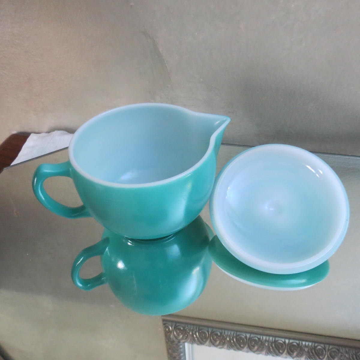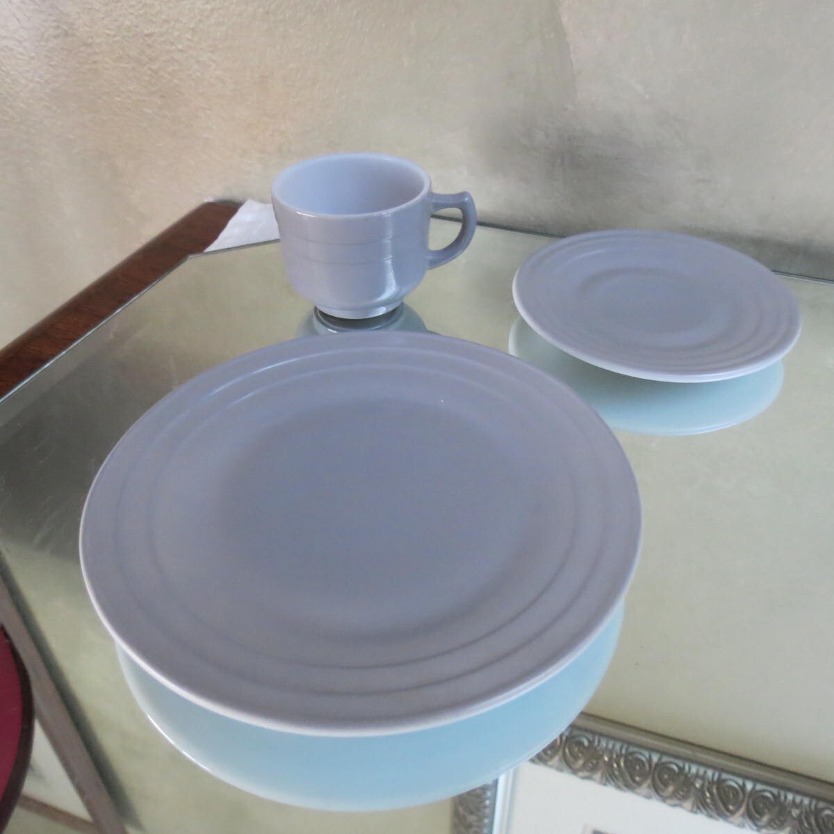 как выглядит Hazel Atlas Children s Little Hostess Set complete tourquoise/gray/rust/gold фото
