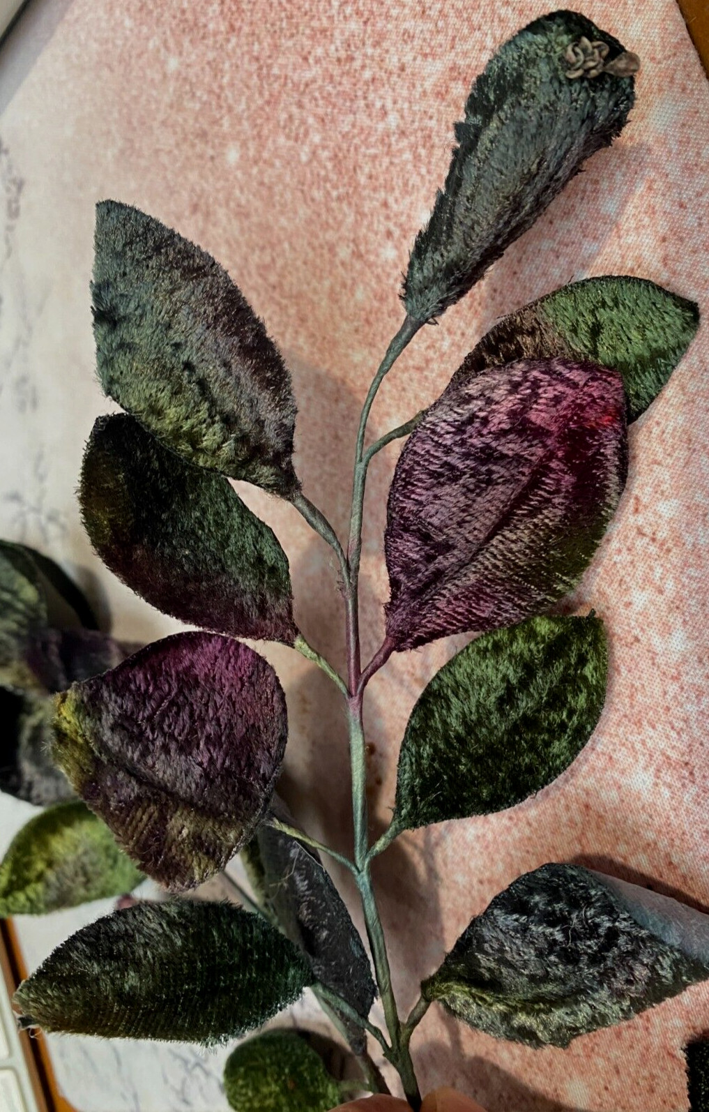 vintage 1940s millinery leaves velvet dark purple plum 1 spray made in Japan