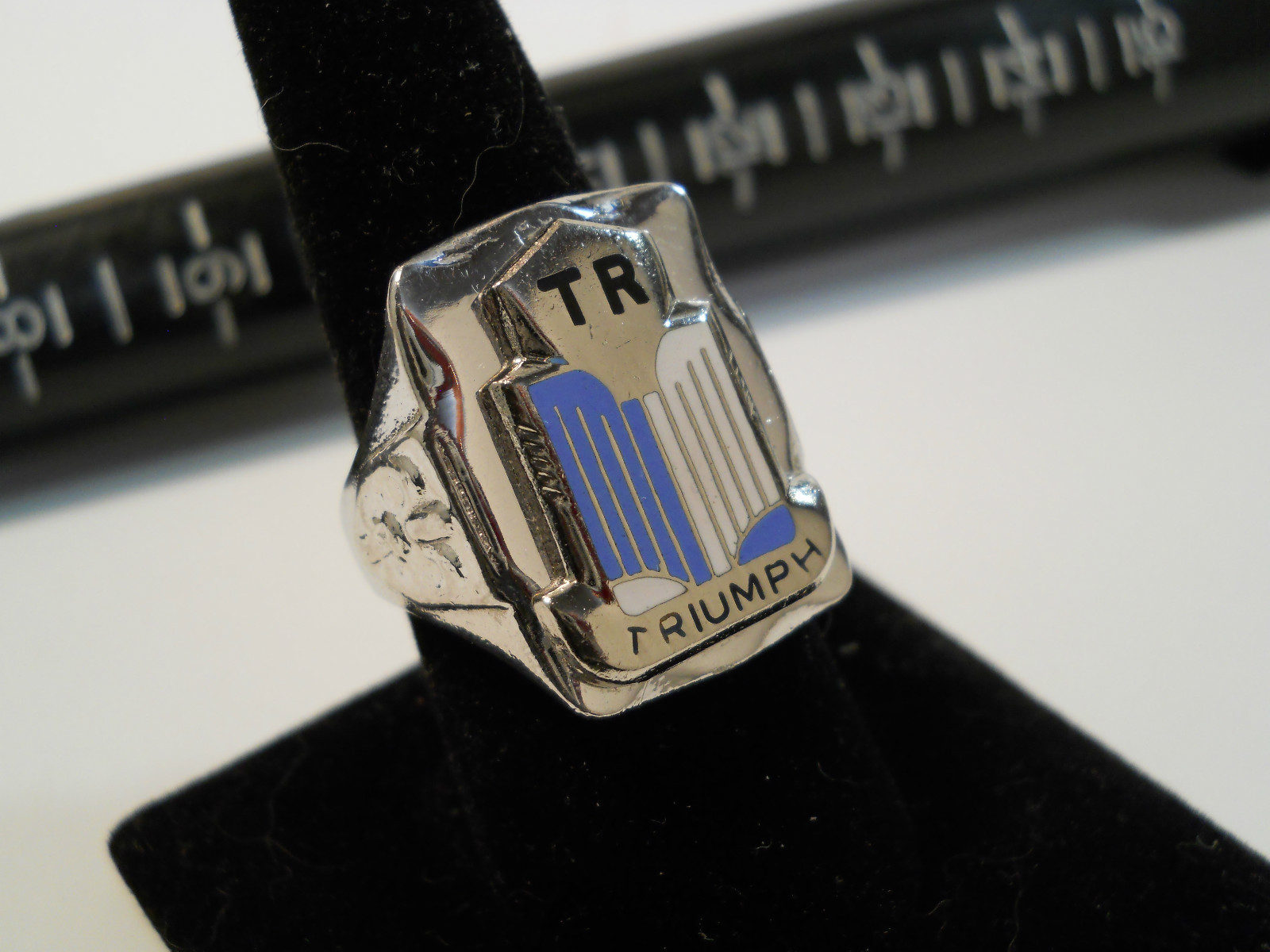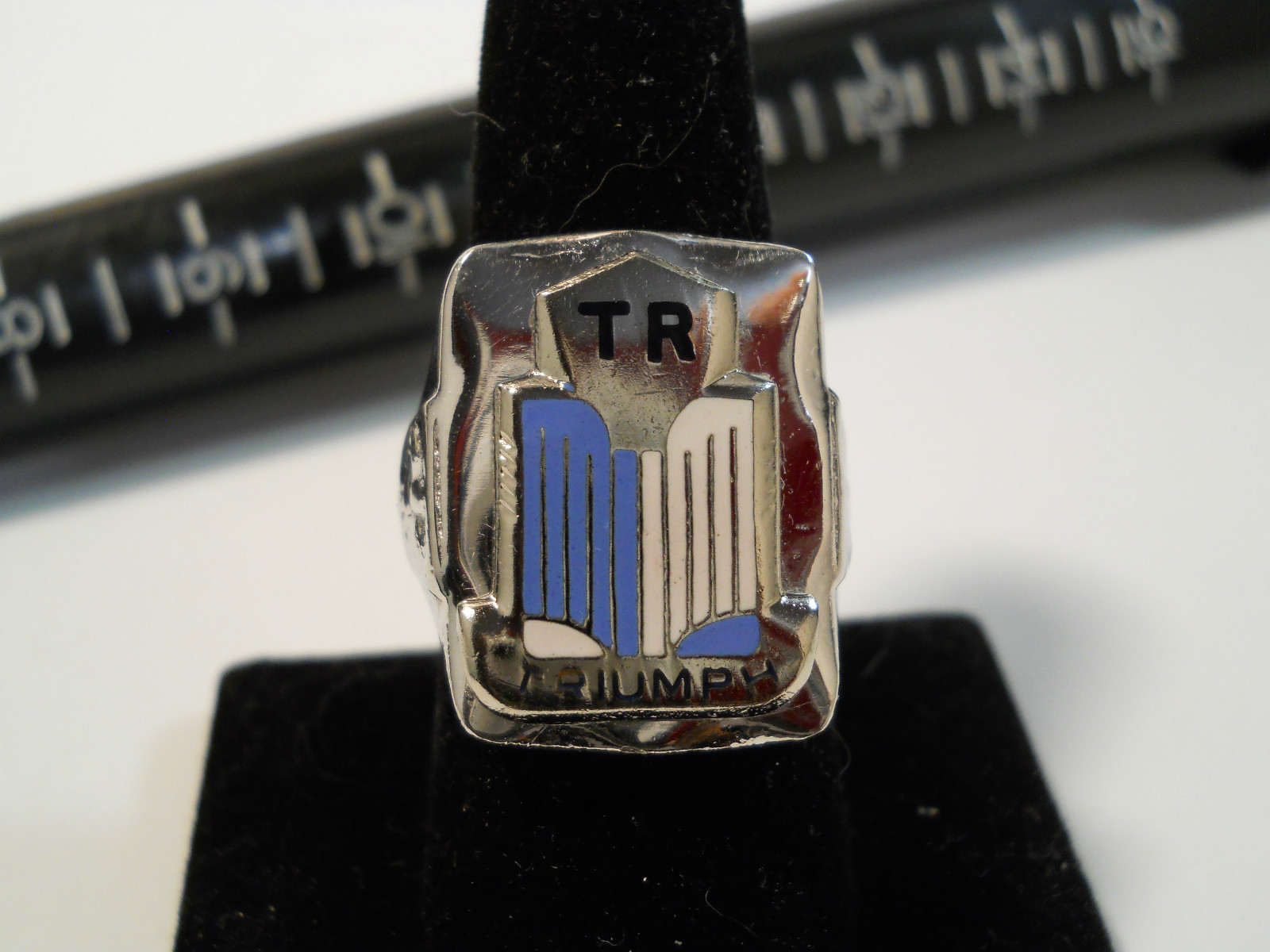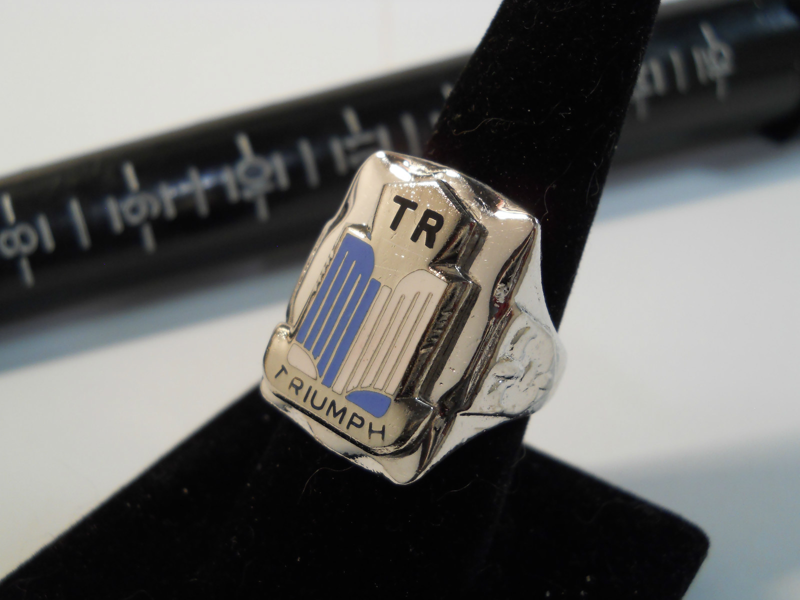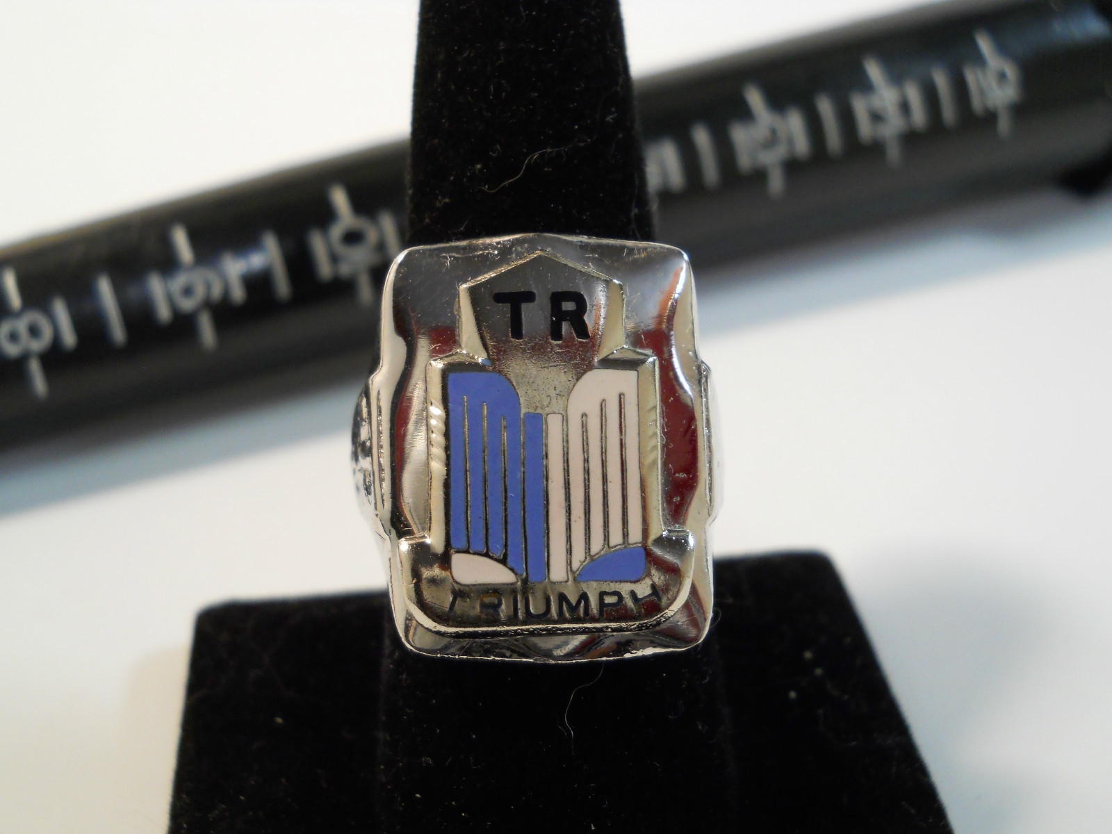 TRIUMPH TR 1953-55 Nickel Silver Ring Enamel Chrome Medallion Choice Size L