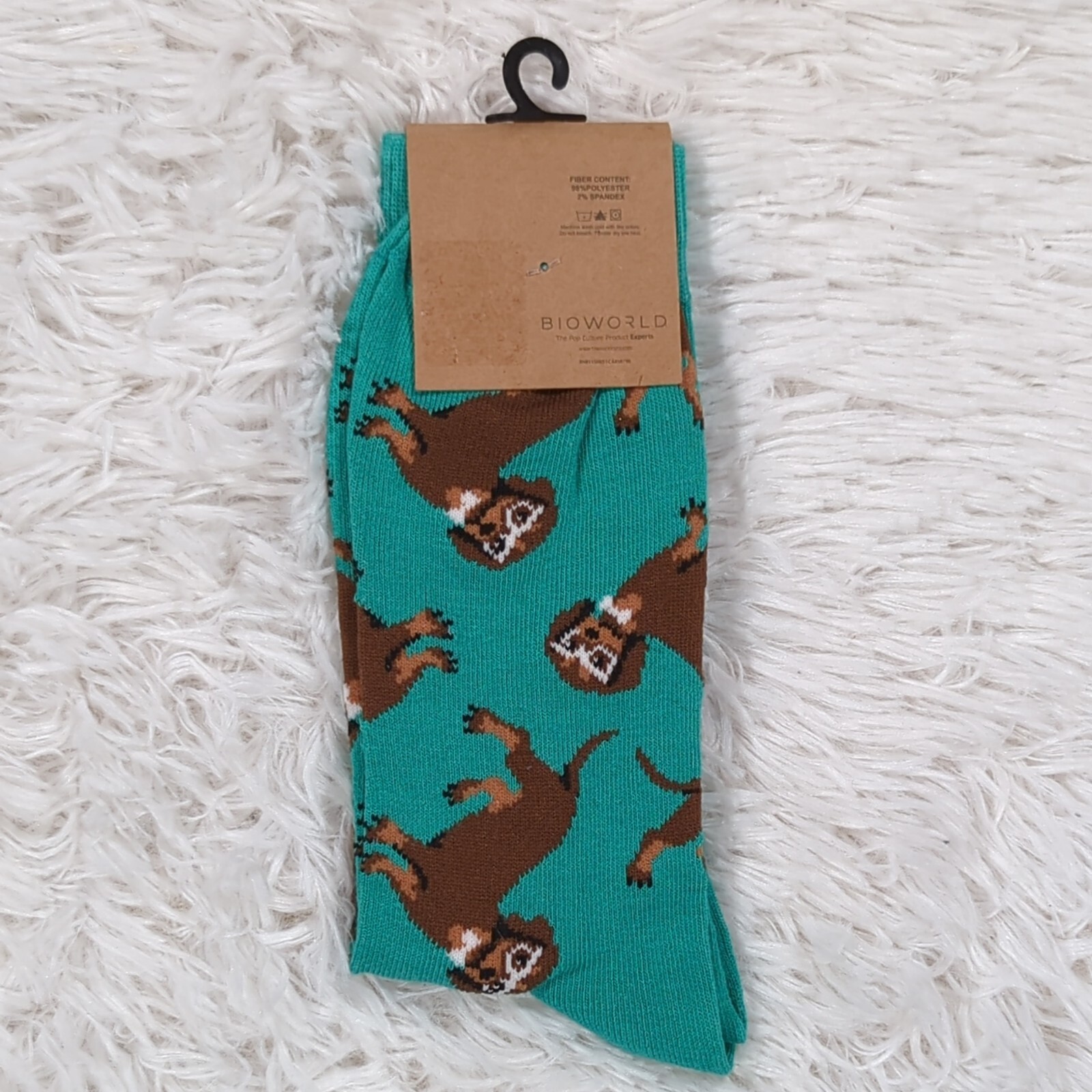 Men's Bioworld Novelty Crew Socks Green Dachshund Shoe Size 6-12 One Pair