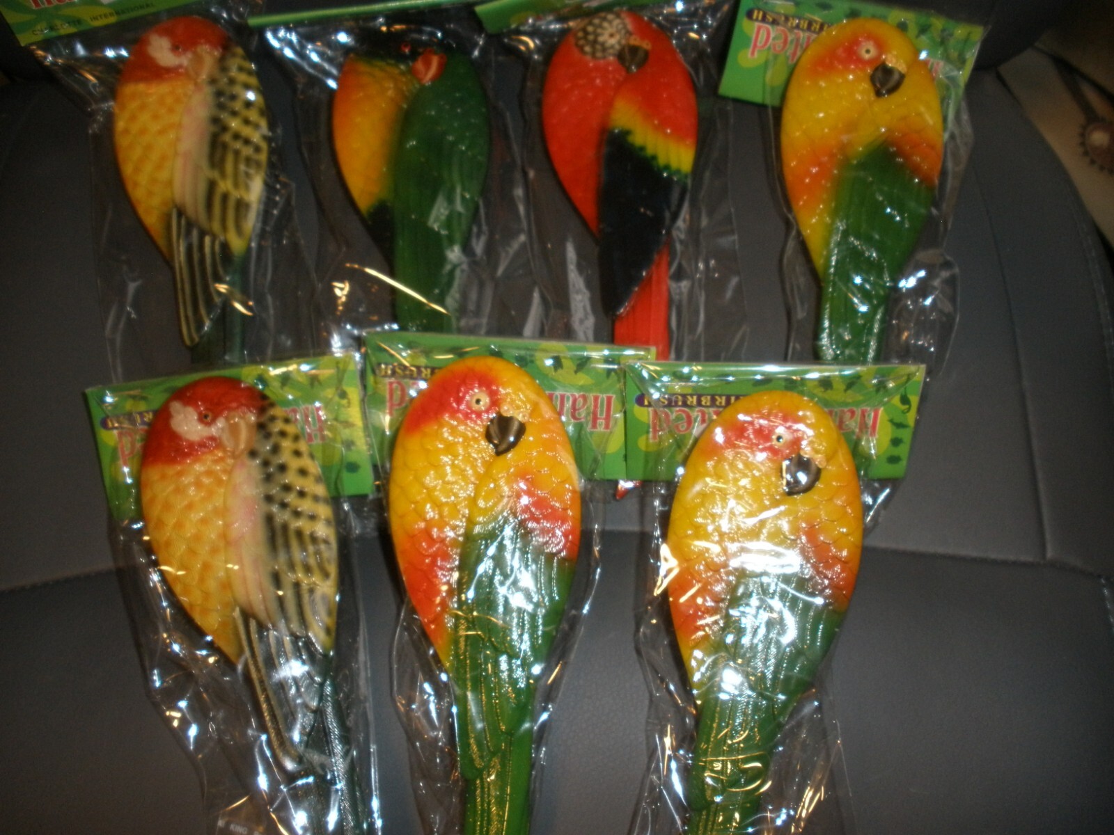 NEW Handpainted Hairbrush Charolotte Int'l PARROTS 8 long