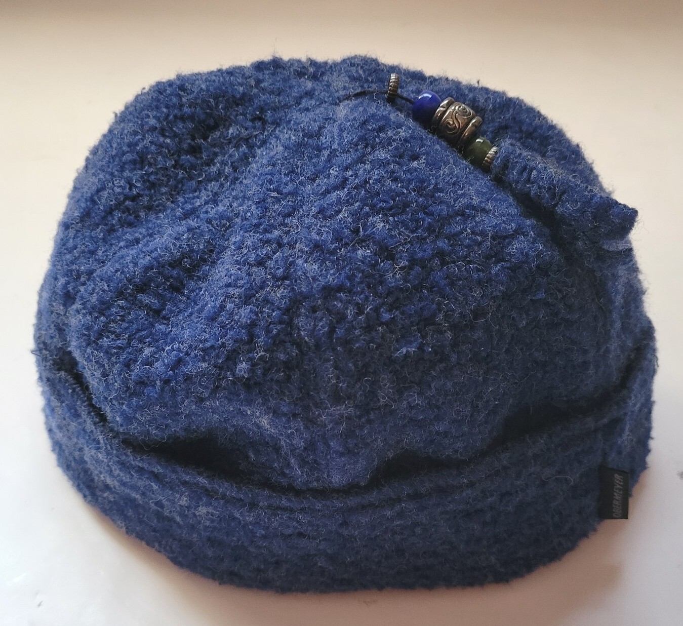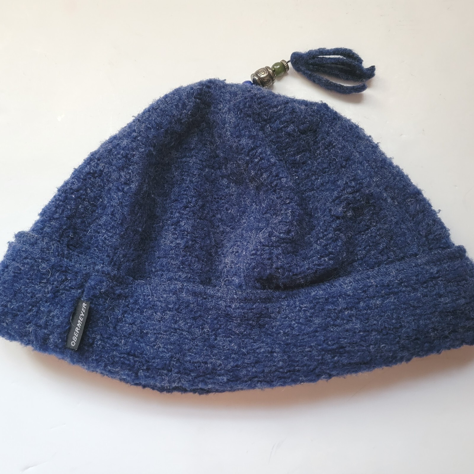 как выглядит Obermeyer Wool Acrylic Hat Cap Navy Blue Metal Beads Stretch Womens One Size фото