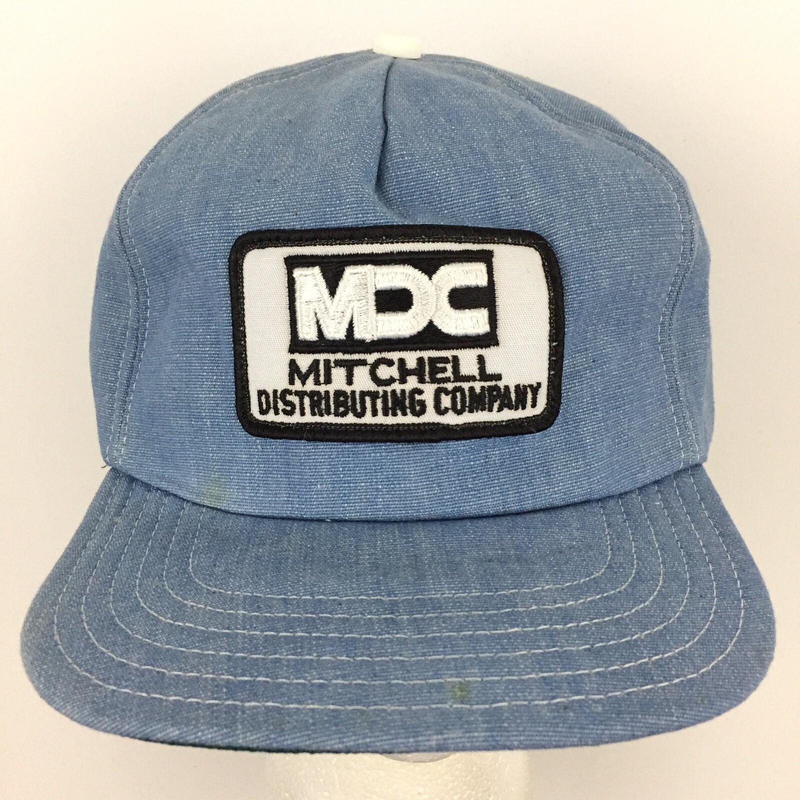 Vtg Mitchell Distributing Company MDC Patch Cap Denim Foam Snap Back Trucker Hat