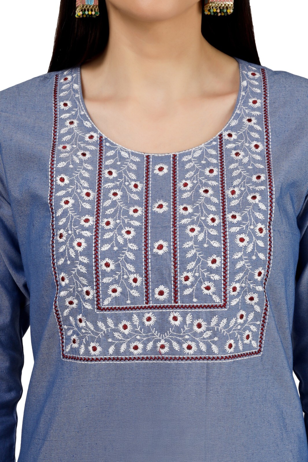 как выглядит Indian Kurti With Pant Suit Straight Kurta Salwar Kameez Women-Blue фото