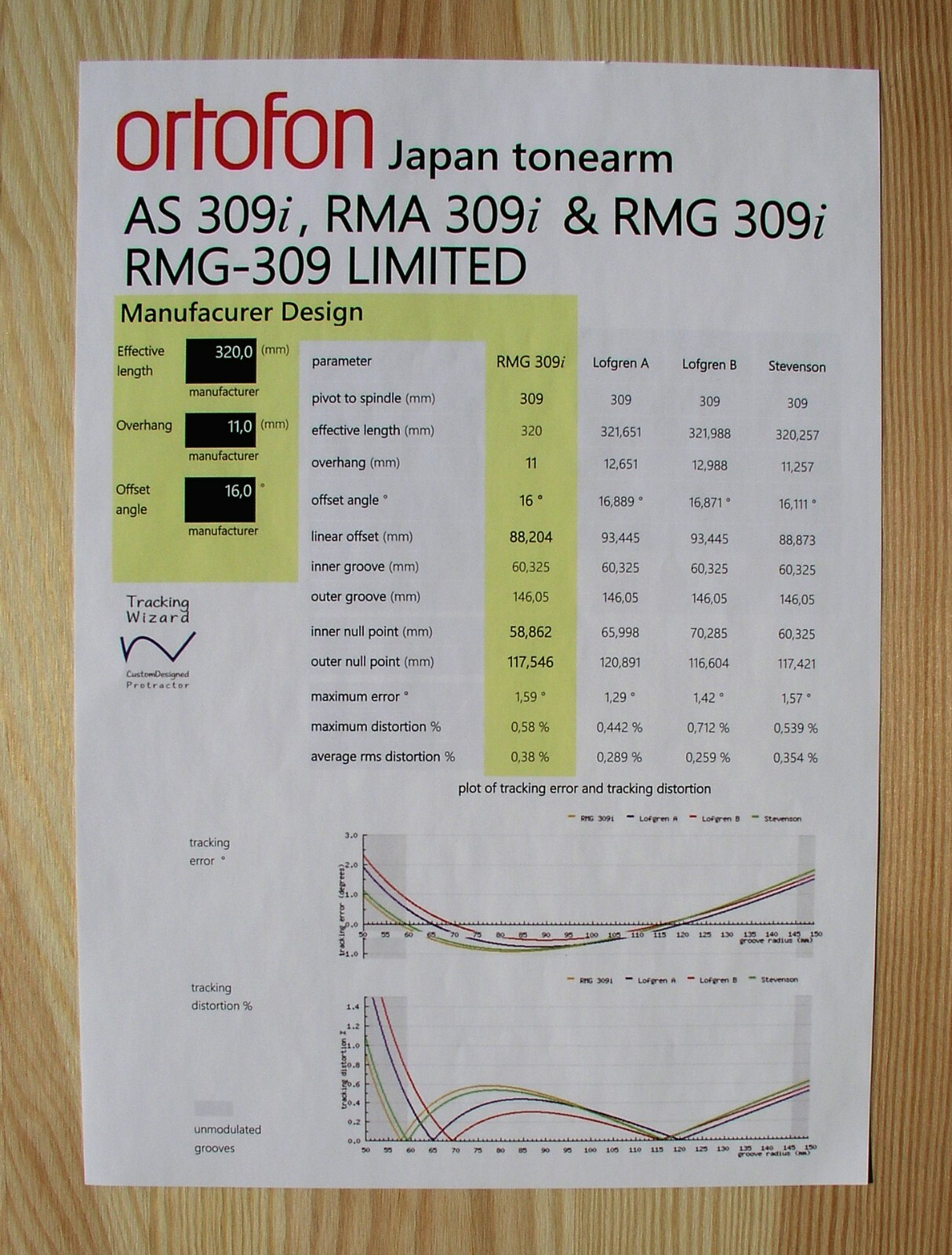 Ortofon AS-309i/RMA-309i/RMG-309i RMG-309 Limited Tonearm Alignment Protractor