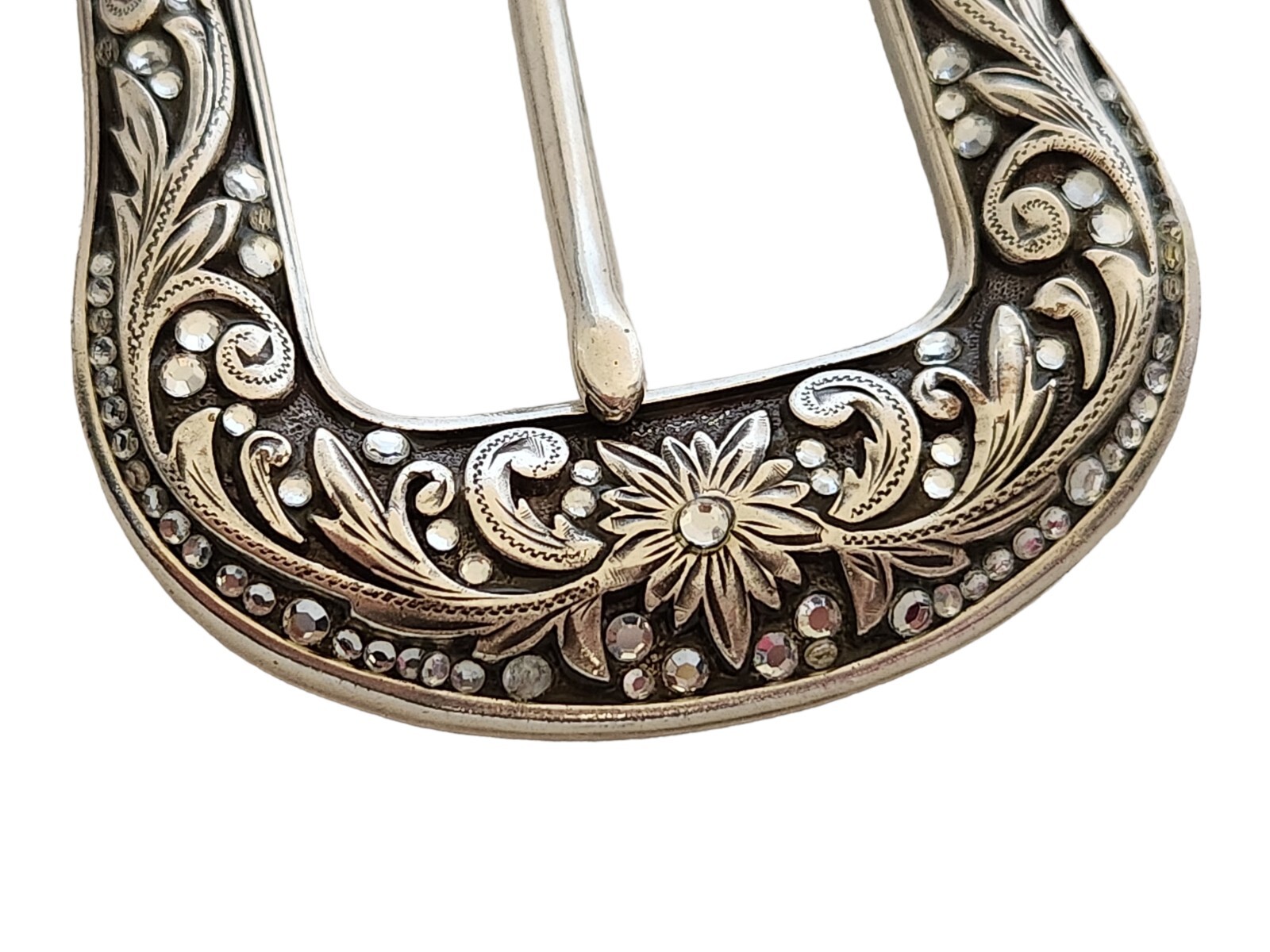 Metal Silver Rhinestone/Crystal Western Floral Belt Buckle Set