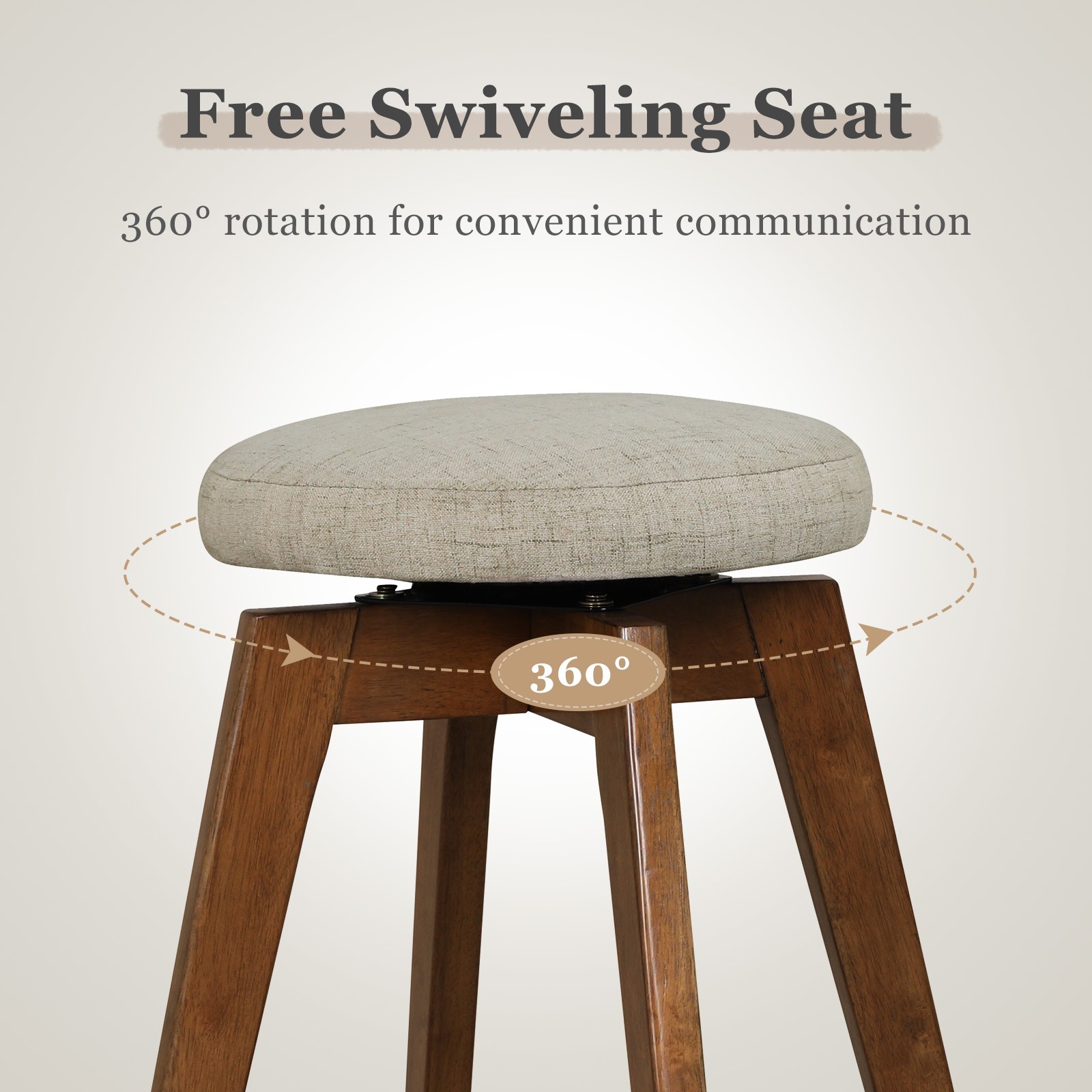 Set of 4 Swivel Bar Stools Upholstered Counter Height Chairs w/ Rubber Wood Legs