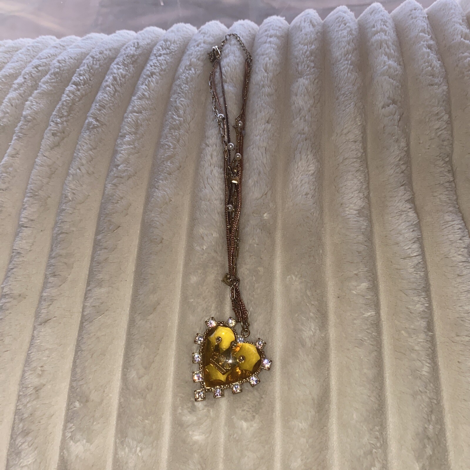 как выглядит Betsey Johnson Vintage Lucite Yellow Heart Necklace фото