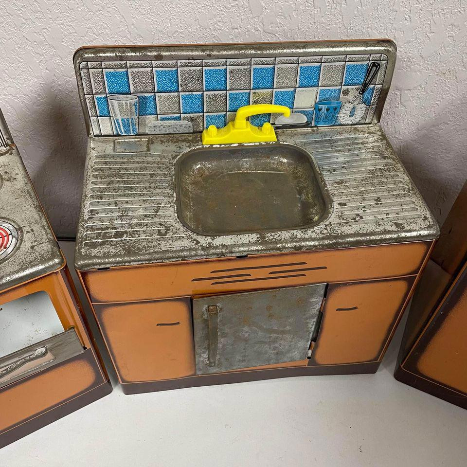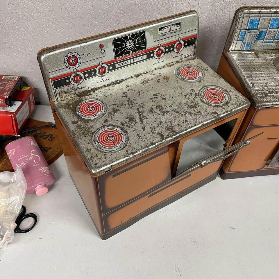3 Vintage Wolverine Pink Toys Kitchen sink oven Stove Automatic Washer Tin - HLN