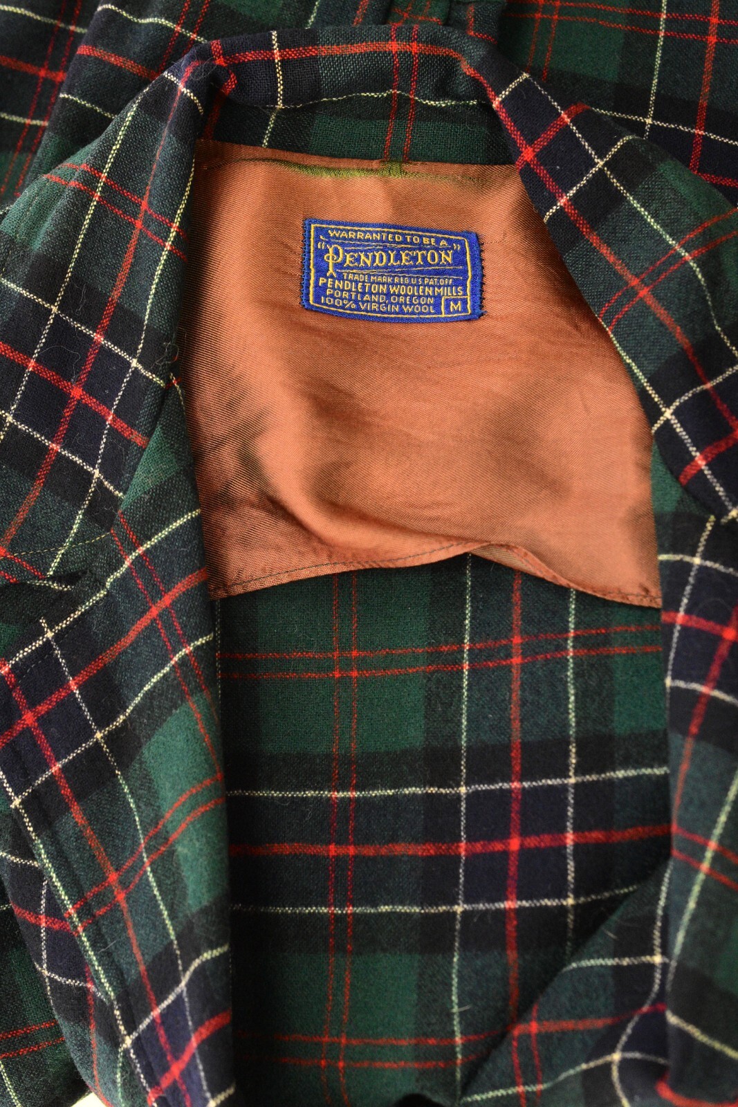 50s/60s Vintage Pendleton Green Plaid Wool Jacket Mens M Chore Jacket