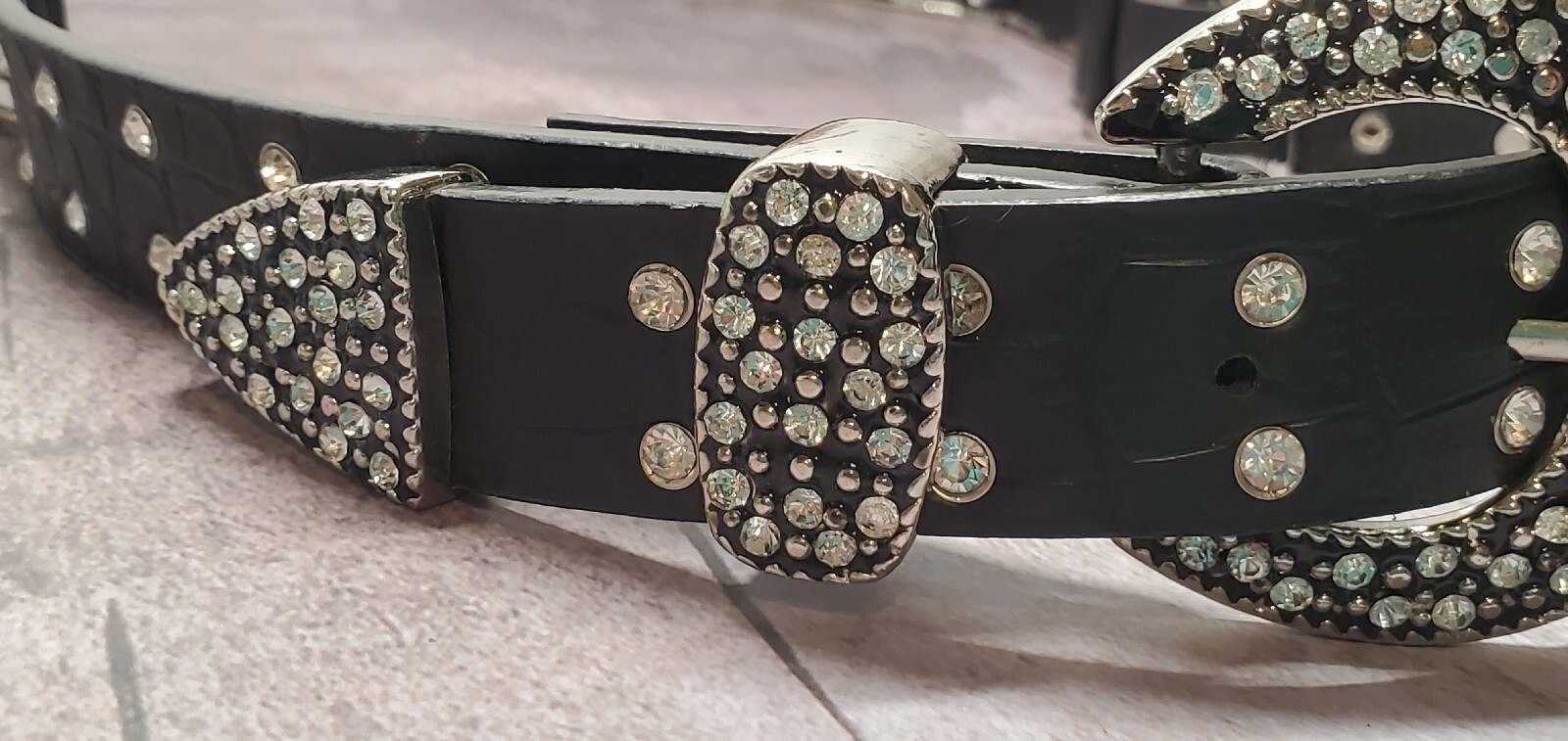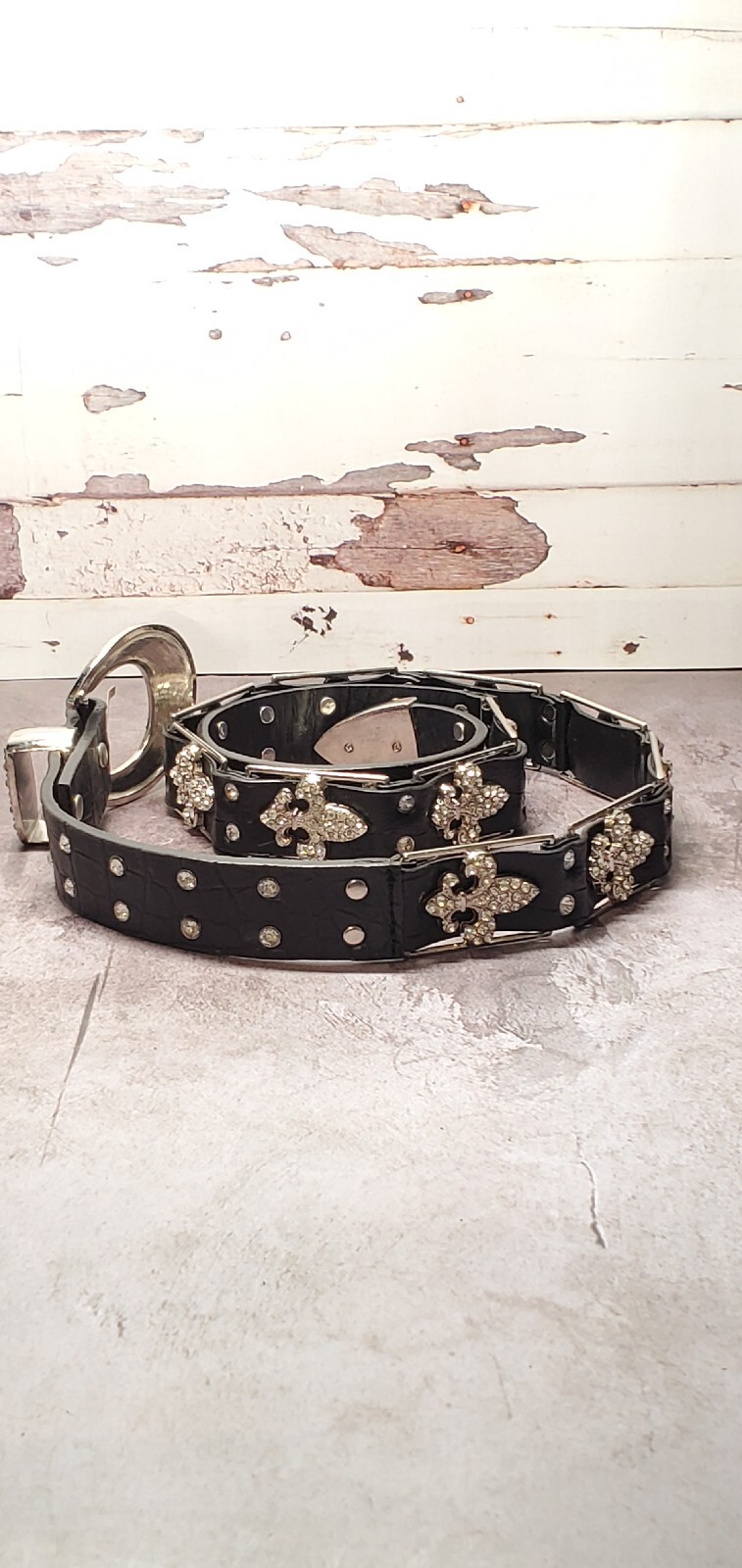 New Ladies / Women's Rhinestone Fleur-de-lis Belt Size L / XL
