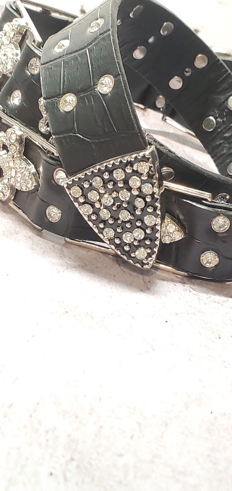 как выглядит New Ladies / Womens Rhinestone Fleur-de-lis Belt Size L / XL фото