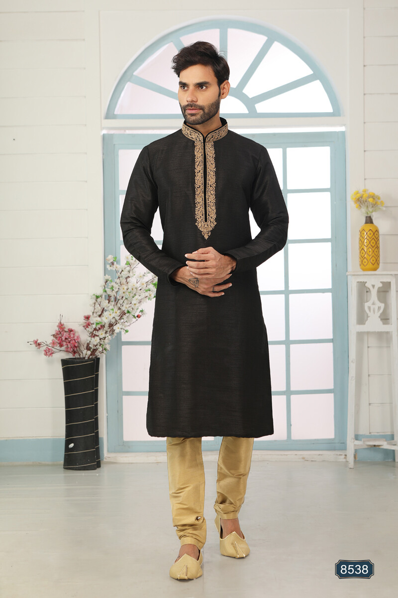 Mens Designer Wedding Wear Traditional Black Kurta Payjama Dress From India