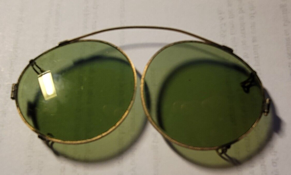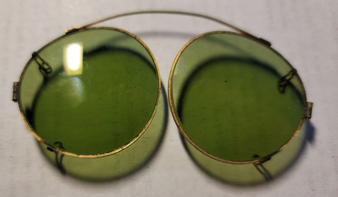 Antique ca. 1920 Flight Aviator Clip On Sunglasses Ornate Wire Frame Clamshell