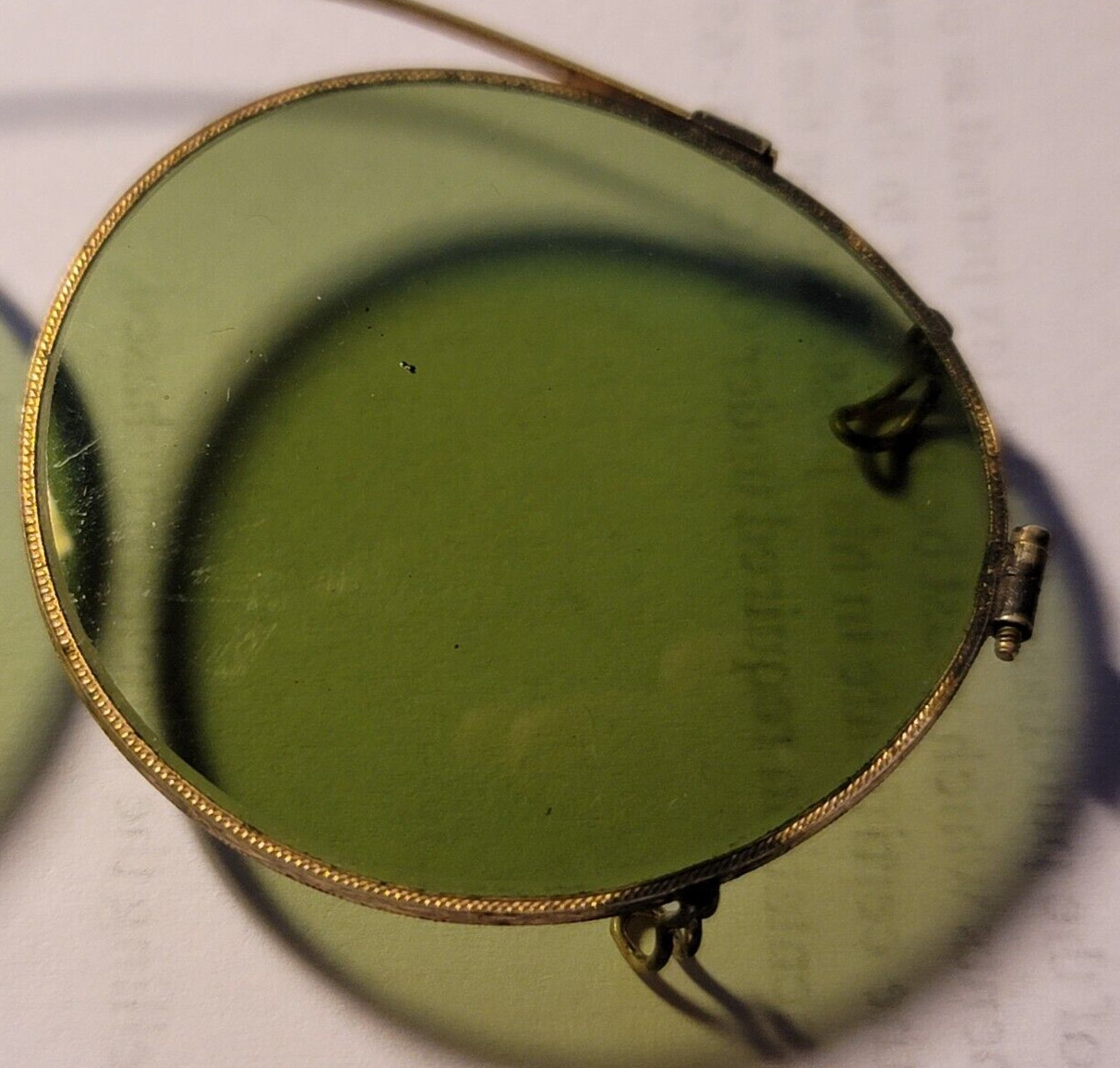 как выглядит Antique ca. 1920 Flight Aviator Clip On Sunglasses Ornate Wire Frame Clamshell фото