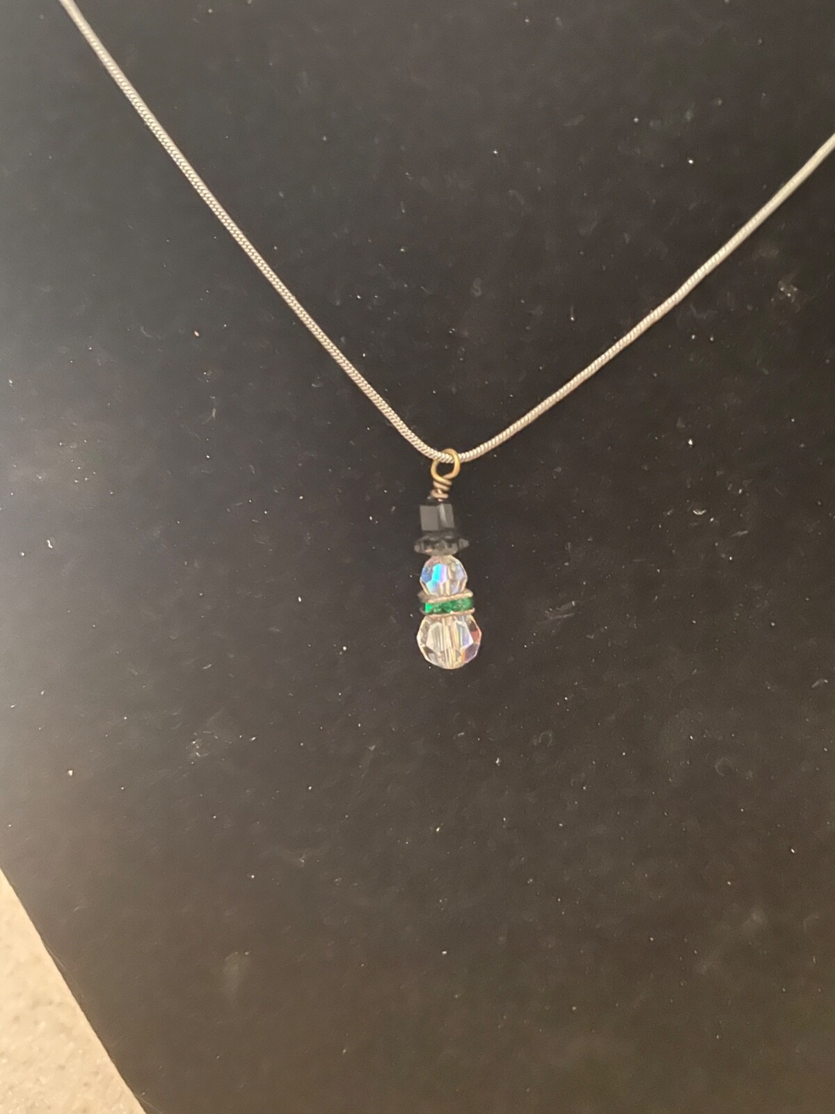как выглядит Crystal Snowman pendant necklace Silver Tone Chain 18" MD22 фото