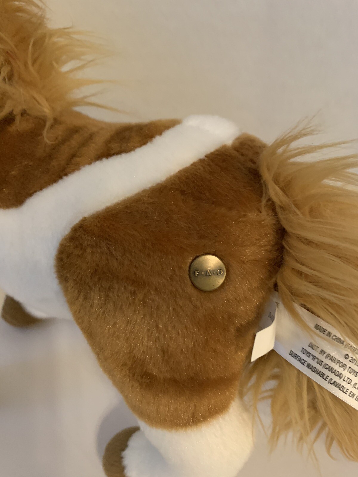 FAO Schwarz Plush Horse Toys R Us Stuffed Animal Pony Brown White Toy
