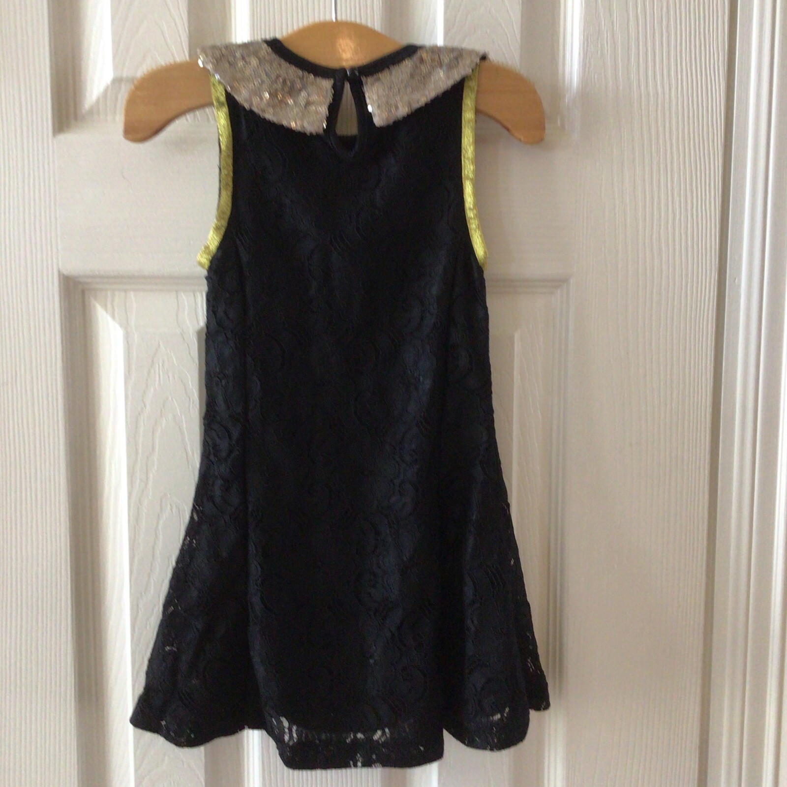как выглядит Girl s Bebe Oh La La Black Lace Gold Sequin Dress Dance Costume Size 3 фото