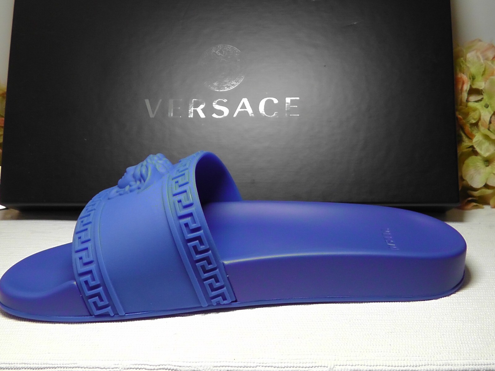 как выглядит Versace Mens Royal Blue Palazzo Medusa Slide Sandal Size 9US 42 EUR  375 фото