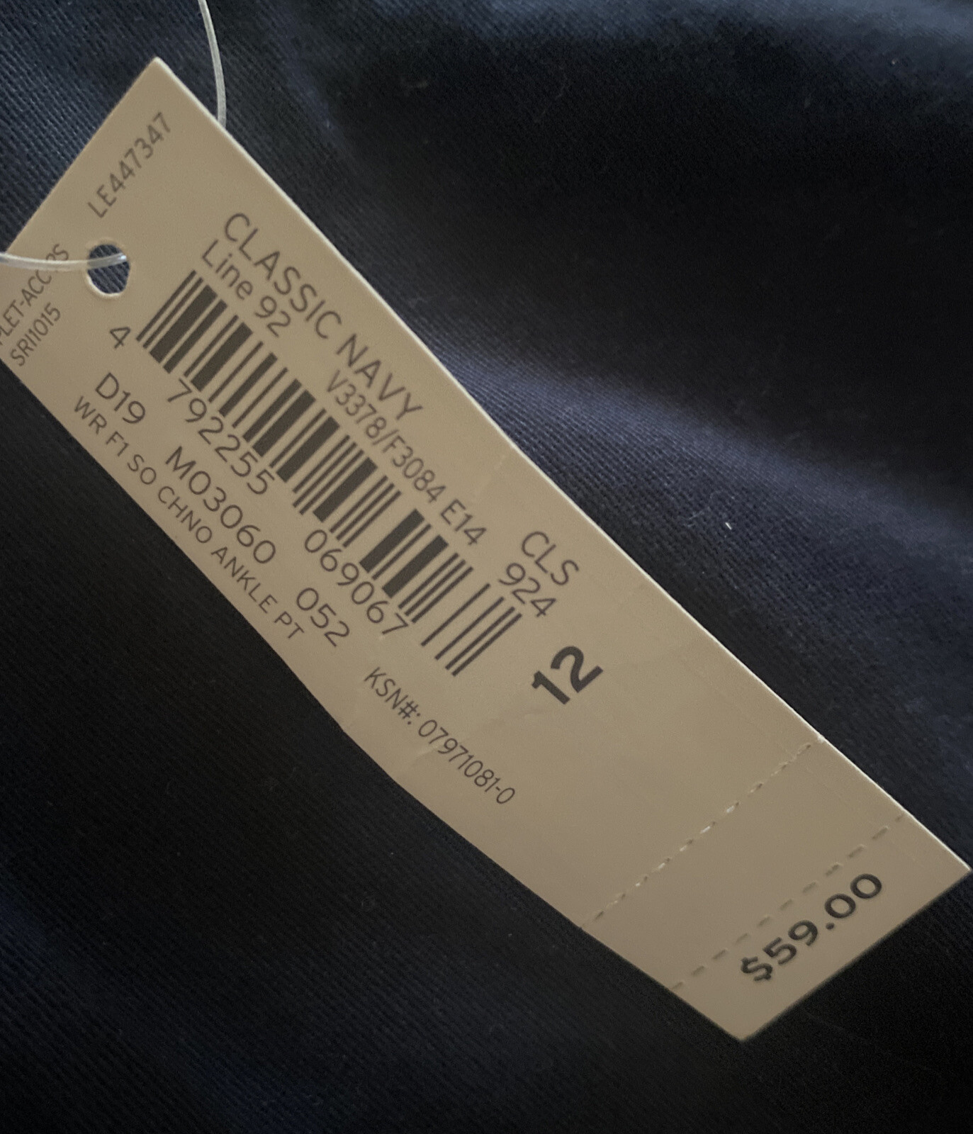 Lands End Women s Casual Pants Stretch Chino Trouser Classic Navy Fit 1 Size 12