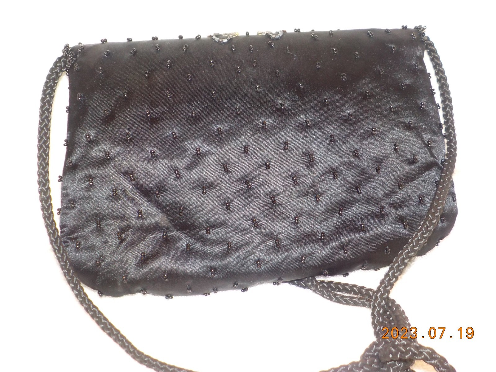 как выглядит Black evening shoulder bag w/ bead accents braided straps фото