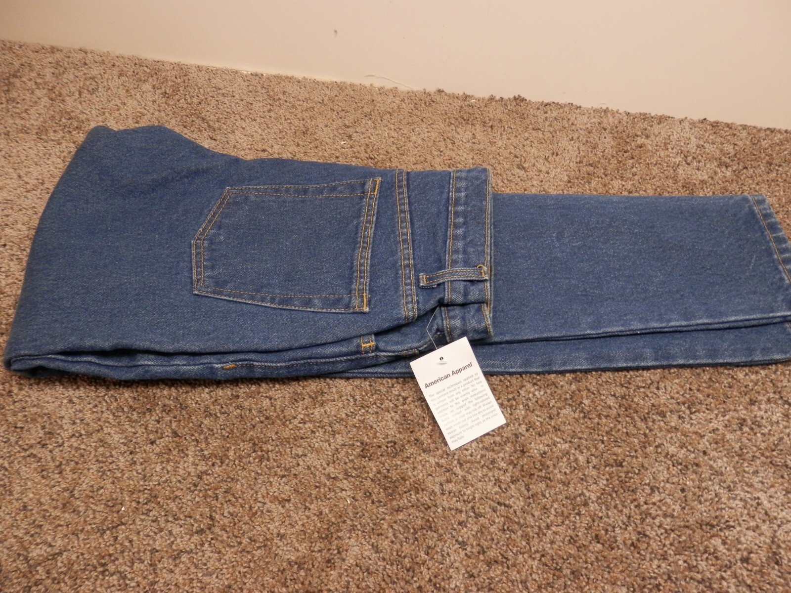 как выглядит AMERICAN APPAREL LADIES HI-WAIST JEANS MEDIUM WASH 100 COTTON SIZE-32 фото