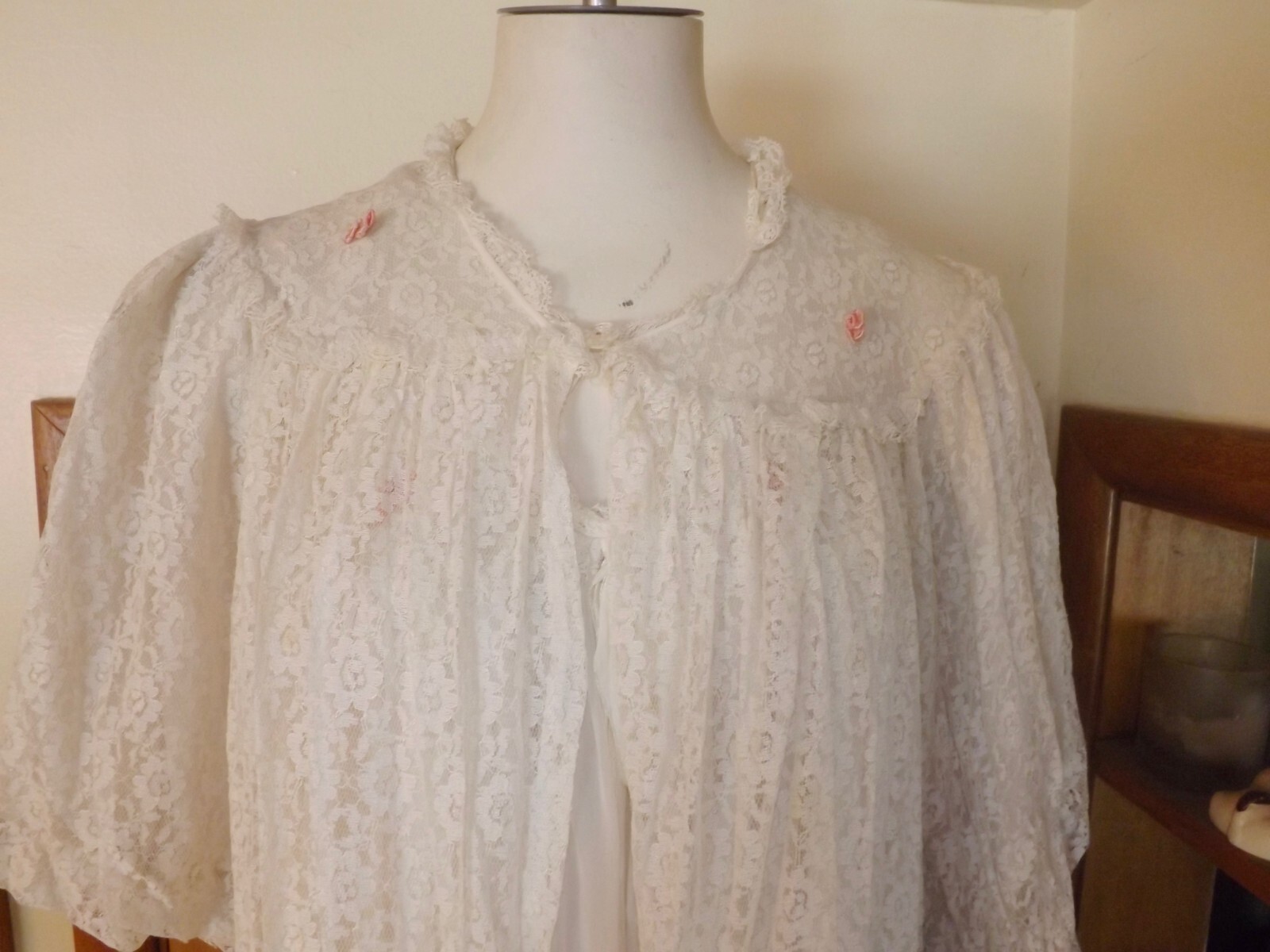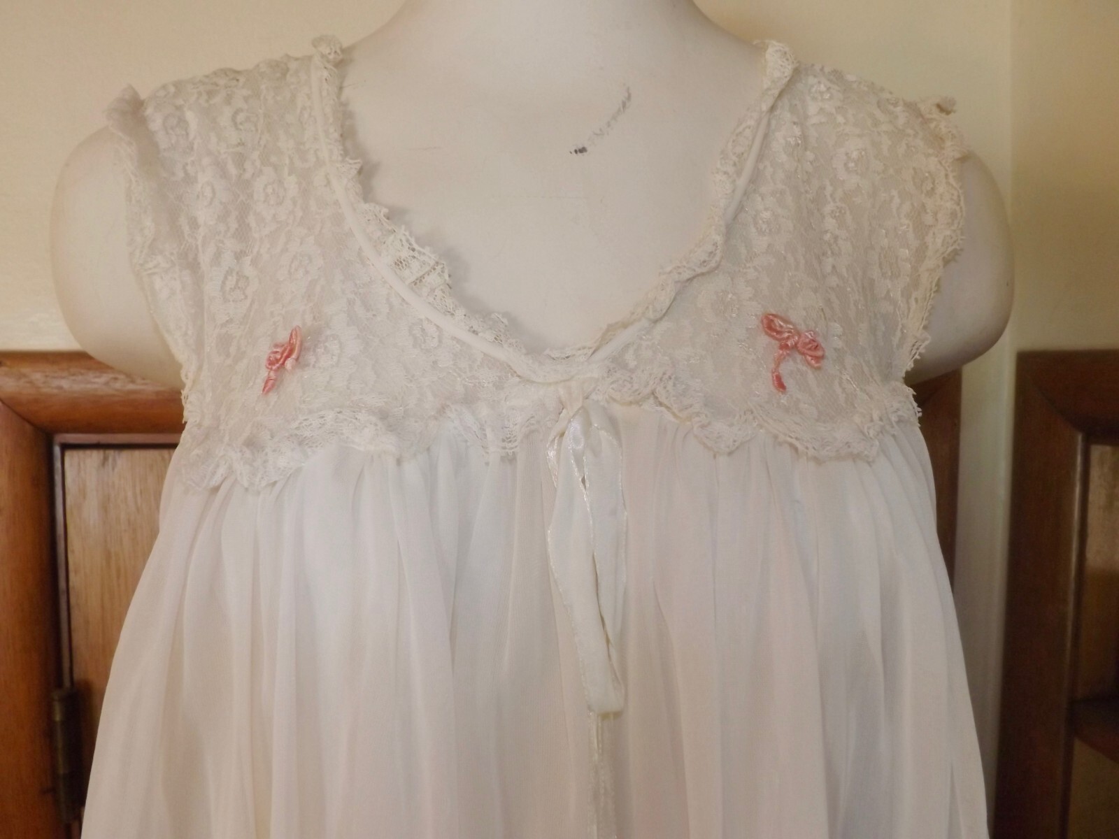 как выглядит WHITE Peignoir 2pcSet Vintage Sheer Chiffon Nightie Robe Nightgown Large Size 40 фото