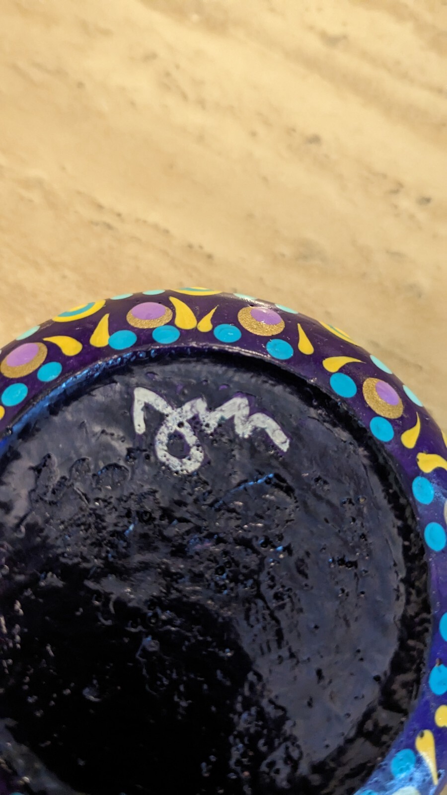 Mandala Stone,Hand Painted Dot Art,Decor Blue Yellow, Signed By The Artist 3D