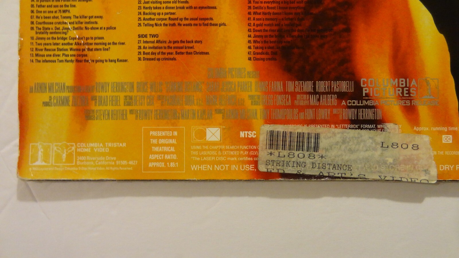 Striking Distance LASERDISC, 1994 Bruce Willis Sarah Jessica Parker - GOOD