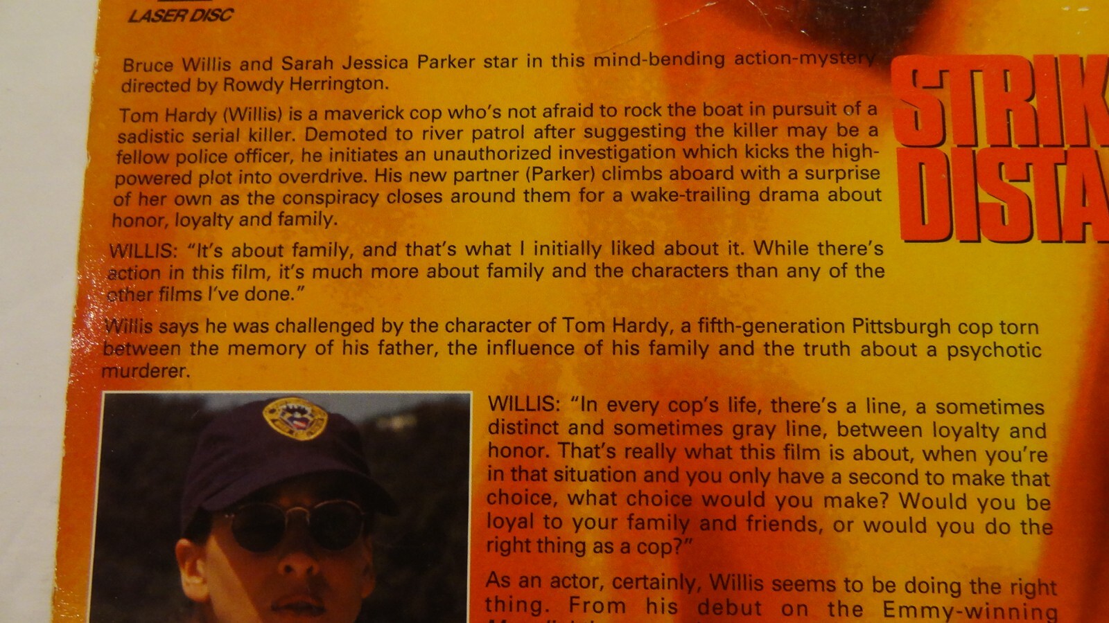 как выглядит Striking Distance LASERDISC, 1994 Bruce Willis Sarah Jessica Parker - GOOD фото