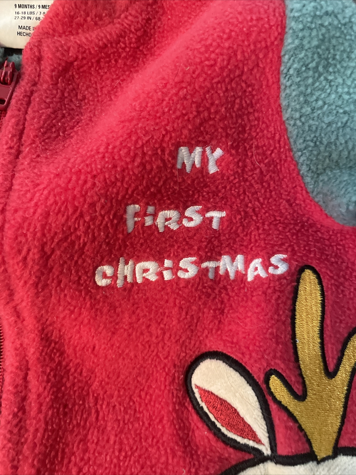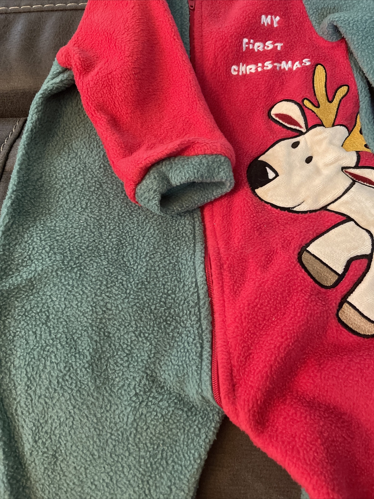 Little Me My First Christmas Red Green Fleece Sleeper Reindeer