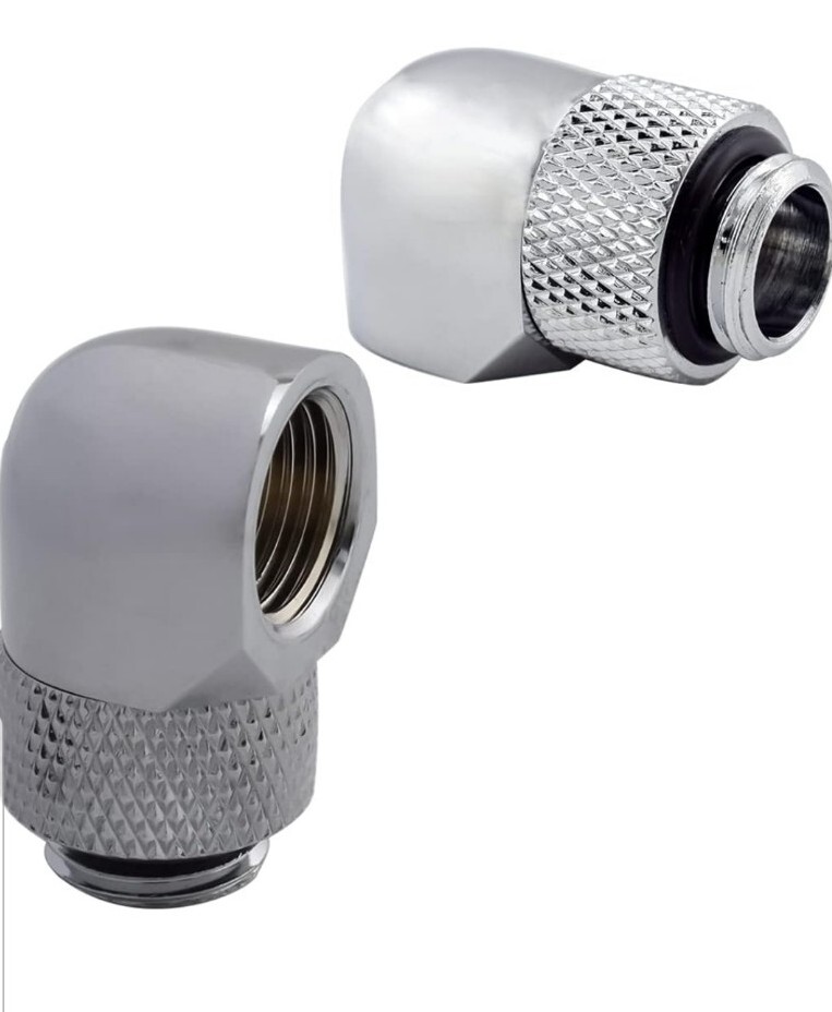 как выглядит 2PC Barrow G1/4" Thread Male to Female 90 Degree Rotary Elbow Water Cooling Fitt фото