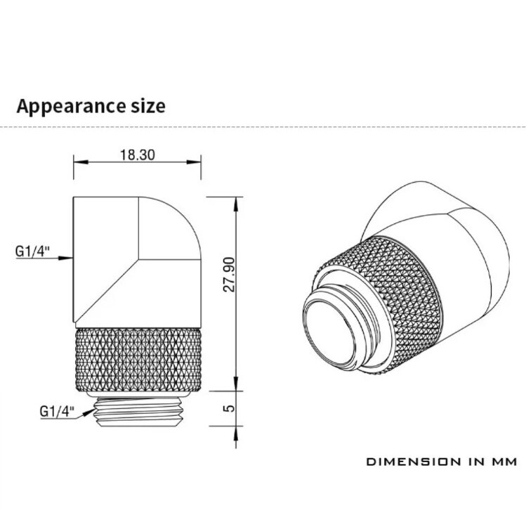 2PC Barrow G1/4 Thread Male to Female 90 Degree Rotary Elbow Water Cooling Fitt