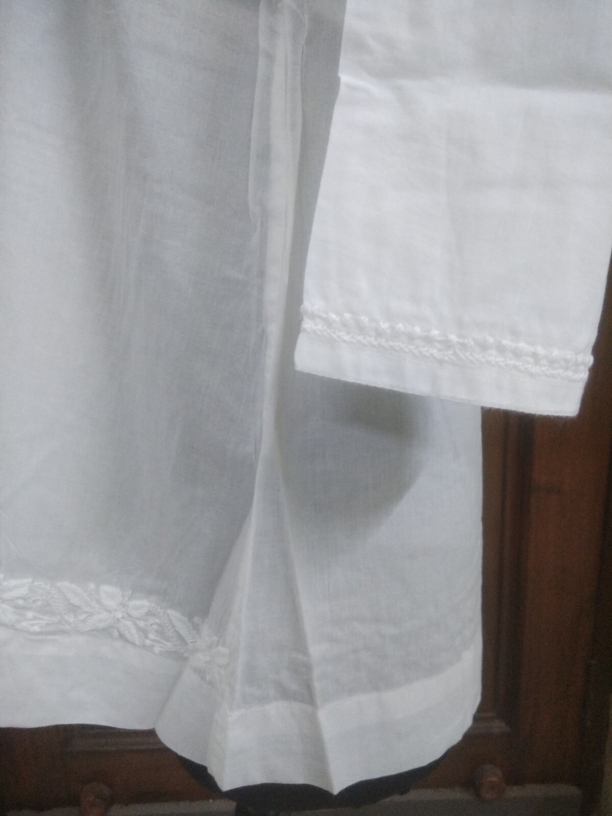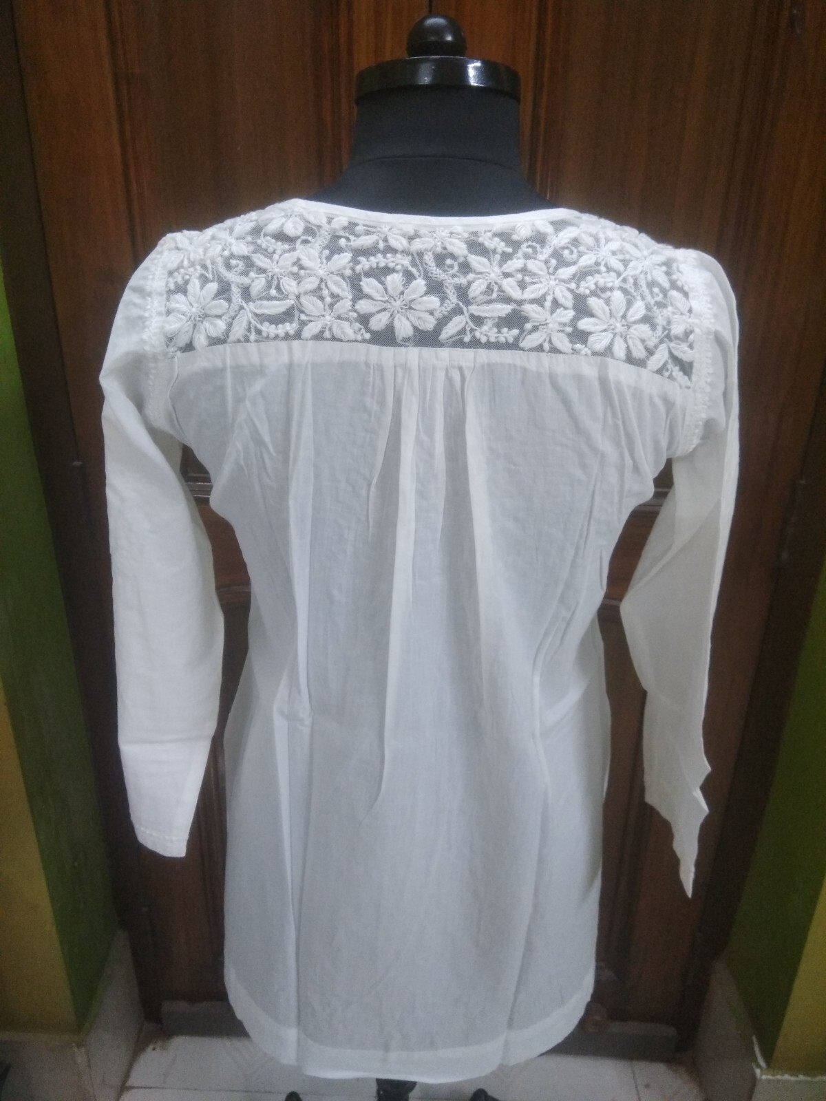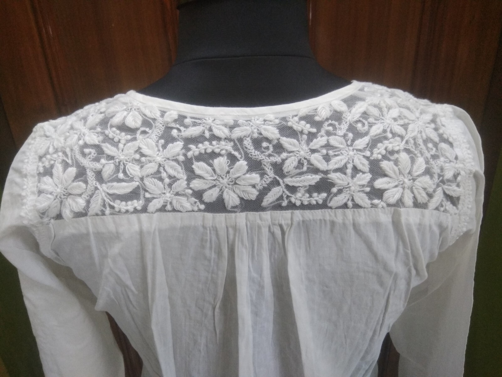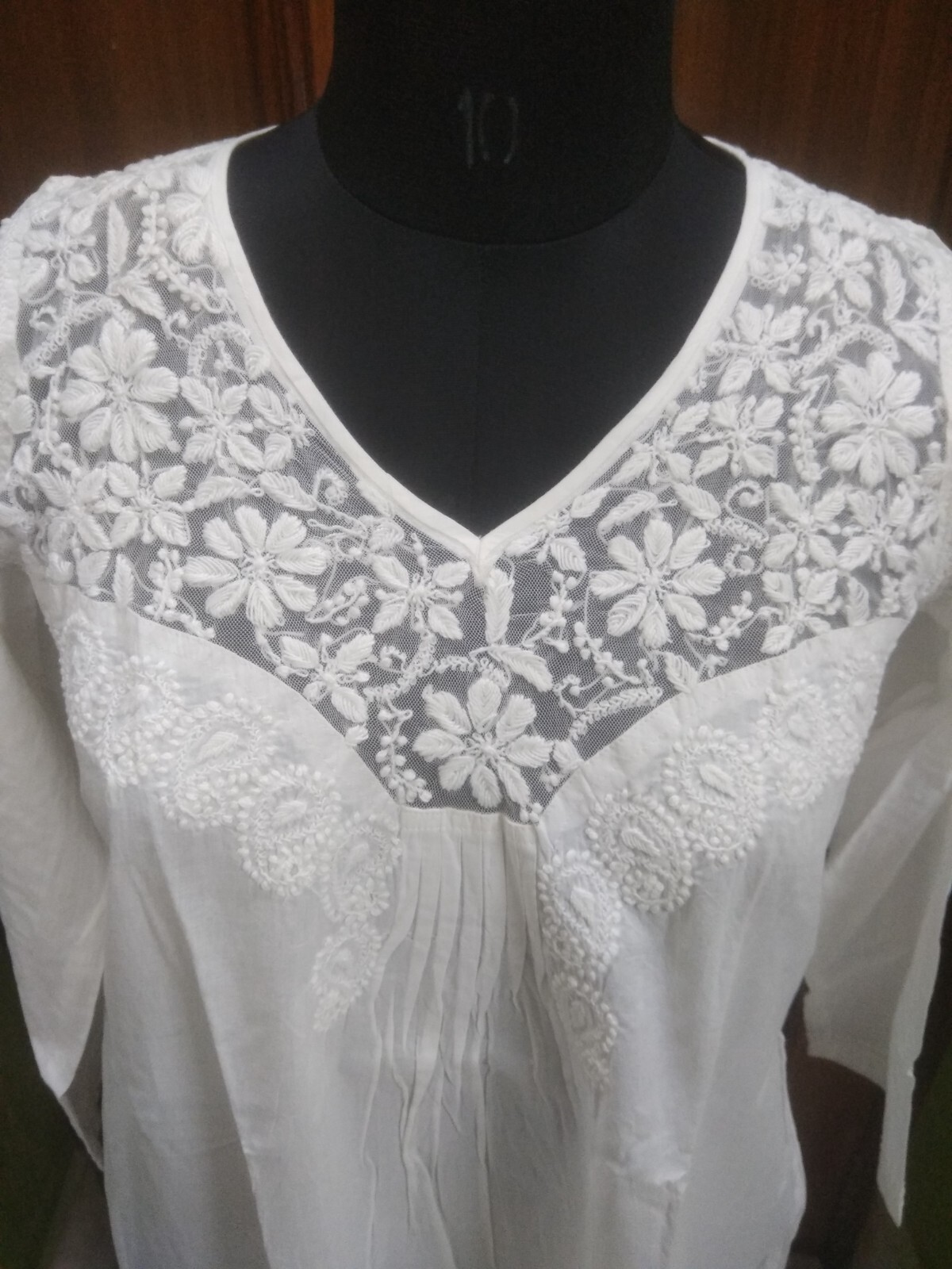 TUNIC BLOUSE SHIRT XS 36 CHIKAN EMBROIDERY 100 COTTON HANDMADE KURTA TOP KURTI