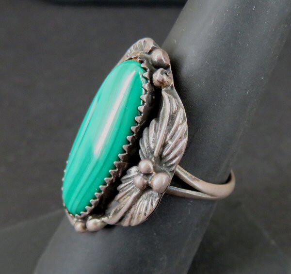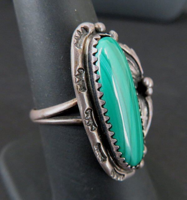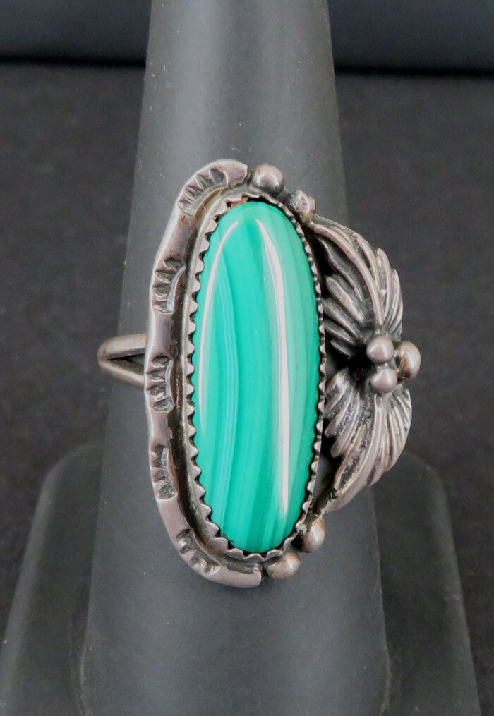 Ring Sterling Vintage Malachite Green Stone Band 925 Silver Size 7.75 Ring