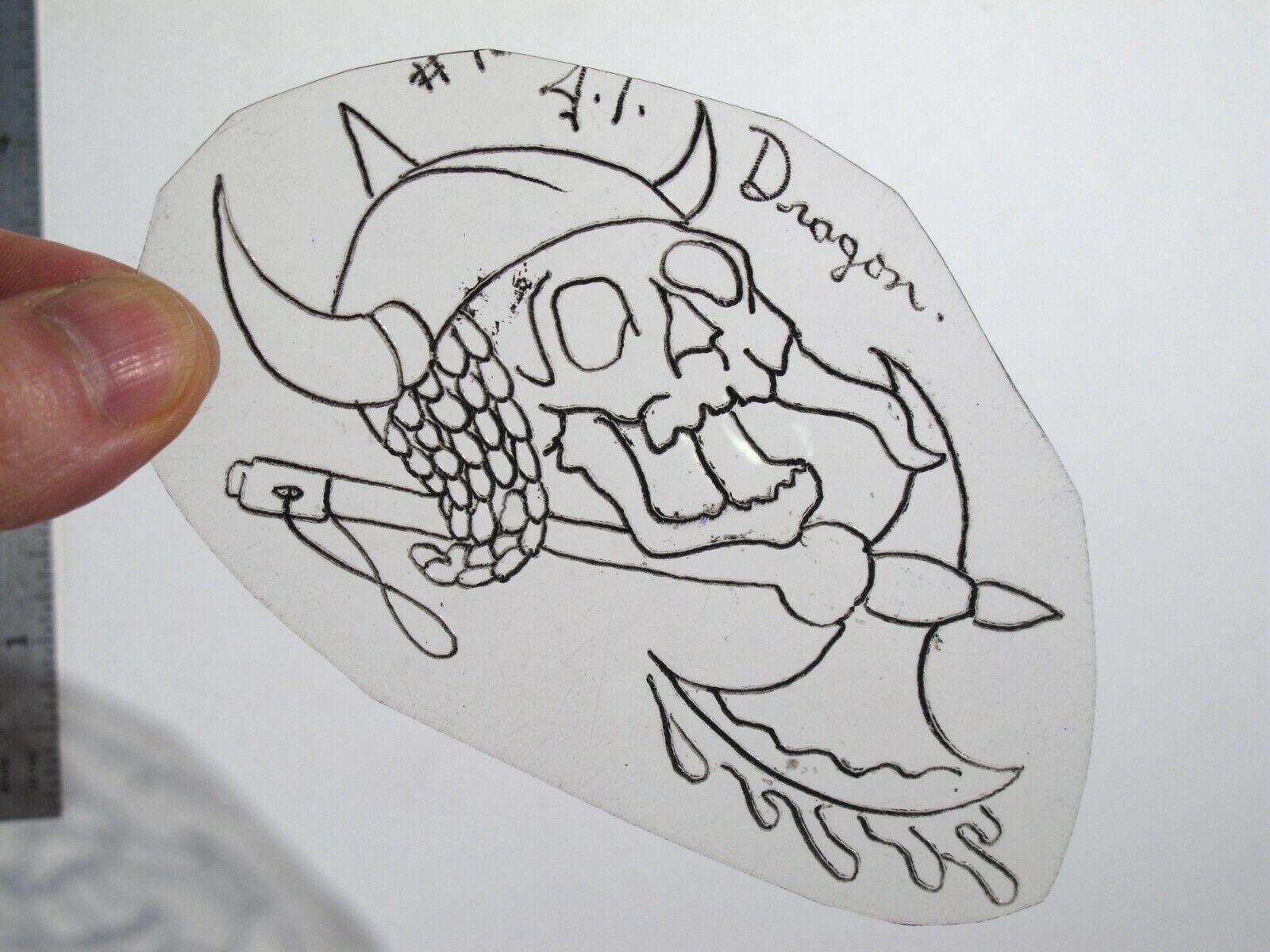 vtg 1960s 1970s Tattoo acetate stencil Viking Axe Skull signed SK4