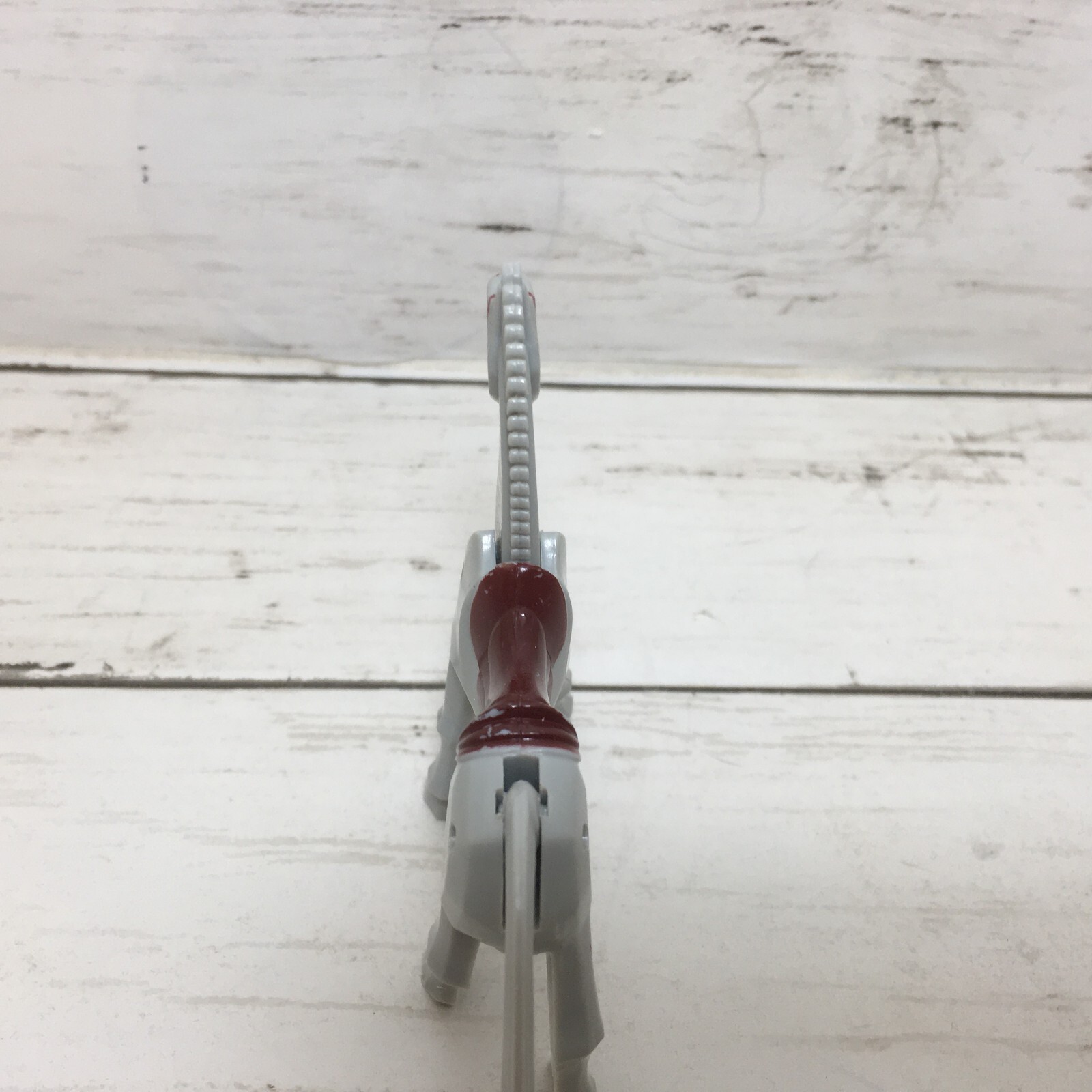 как выглядит Gray Horse Figure Brown Saddle Plastic Toy Movable Head and Tail фото