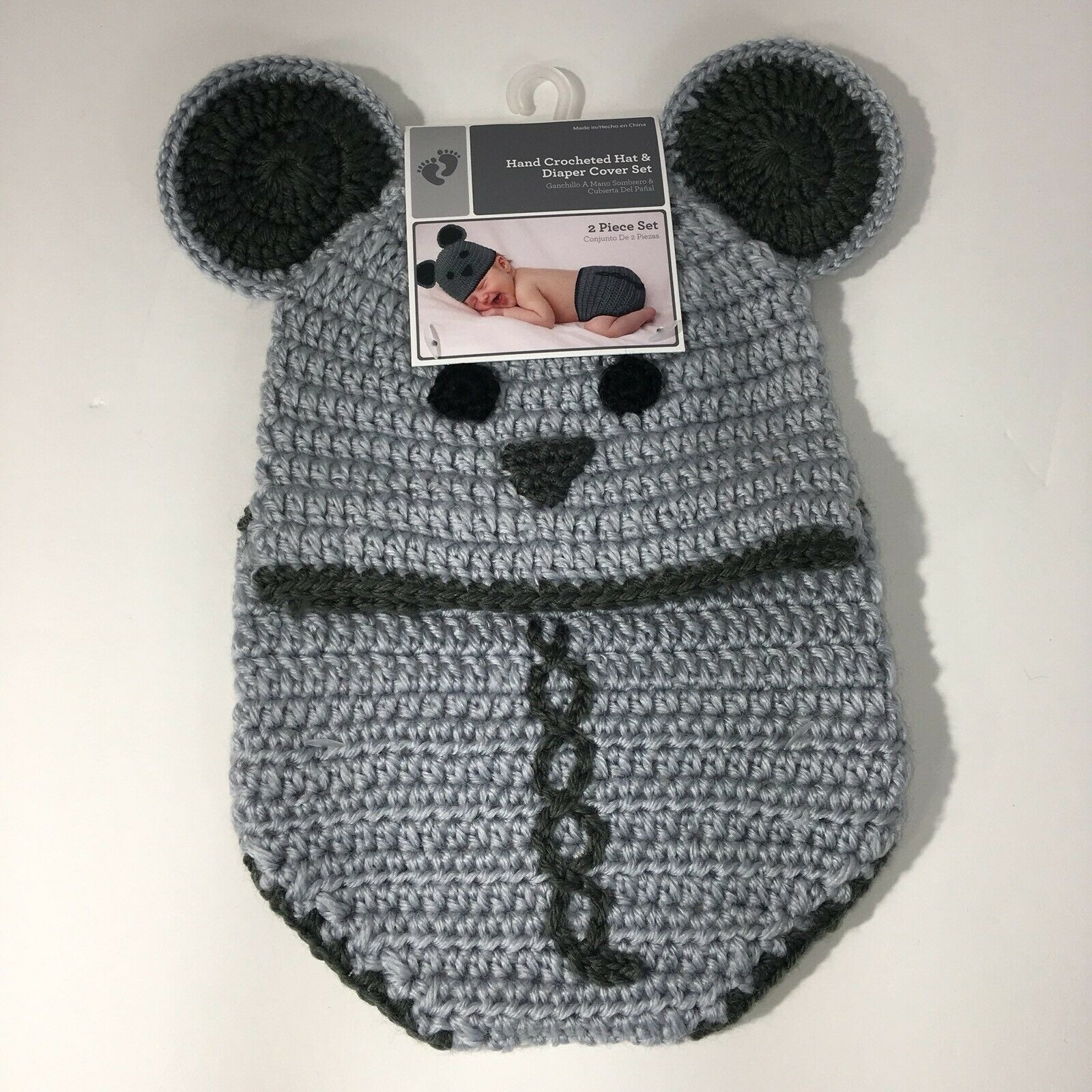 Hand Crocheted Hat And Diaper Cover Mouse Sz 0-9 Months Infant Baby Photo New