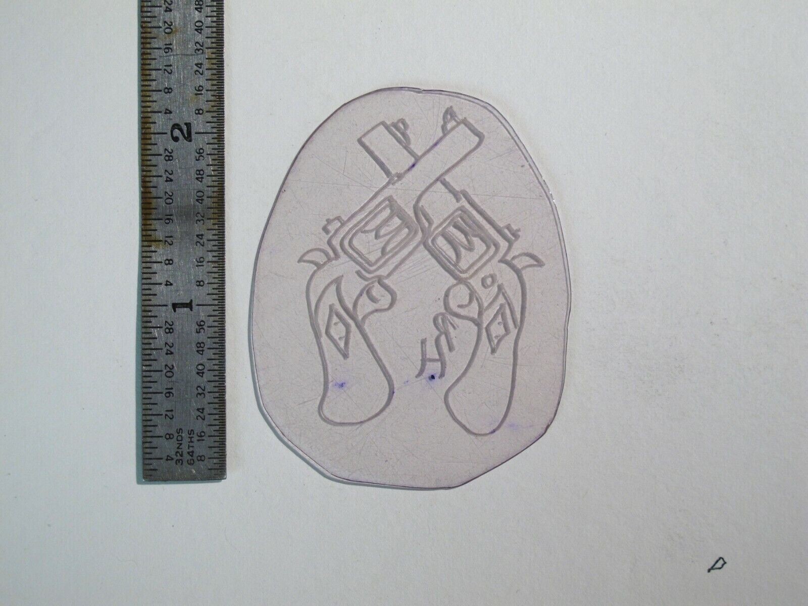 vtg 1960s 1970s Tattoo acetate stencil Crossed Handguns signed WT