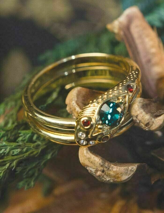 как выглядит 925 SSL Fancy Grand Snake Ring Round Cut Green Emerald Lab Created фото