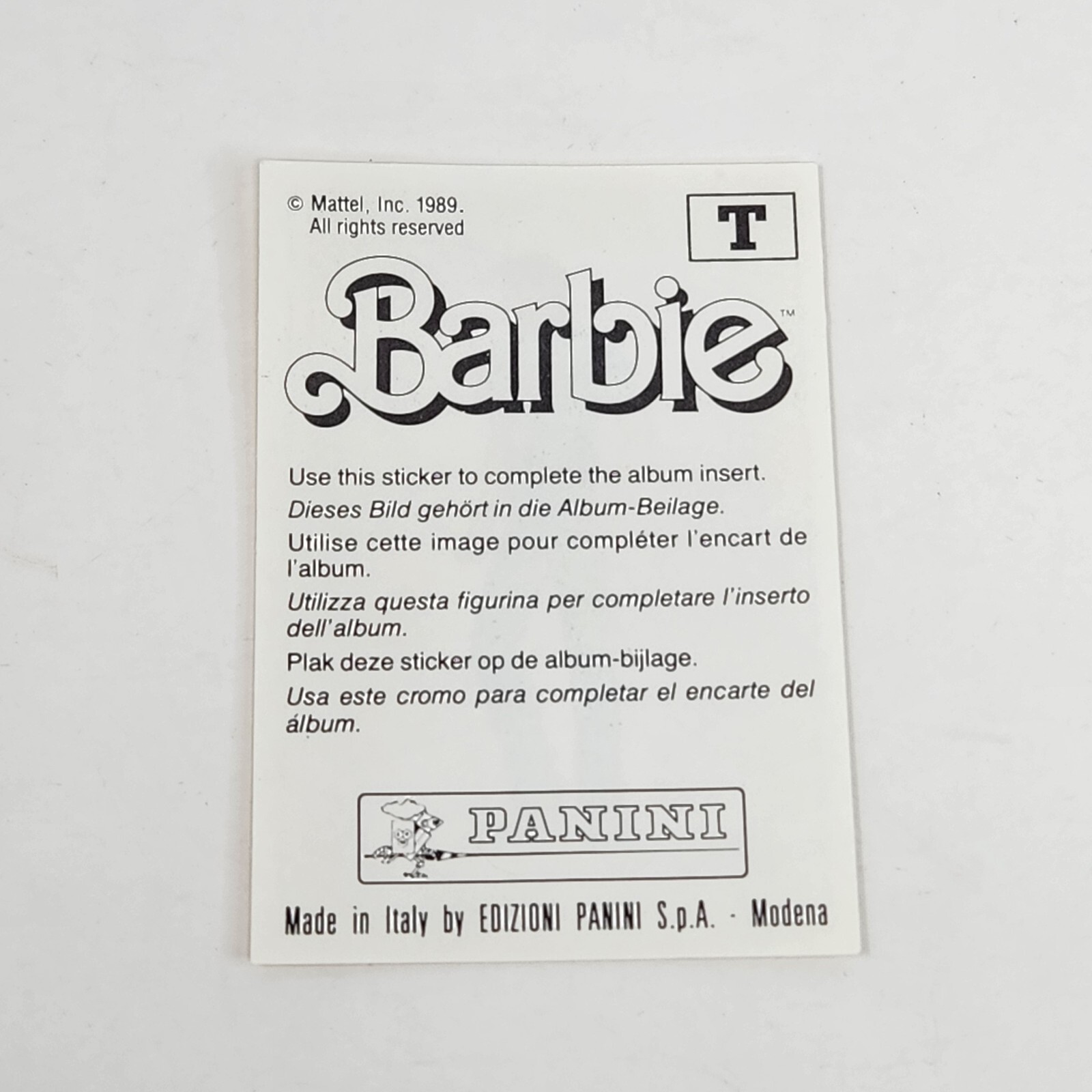 • VINTAGE 1989 MATTEL FIGURINE PANINI BARBIE ALBUM STICKER NOS NEW OLD STOCK T