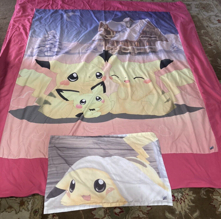 Rare Pikachu Pok mon duvet cover and 2 pillowcases for Full/Queen size bed