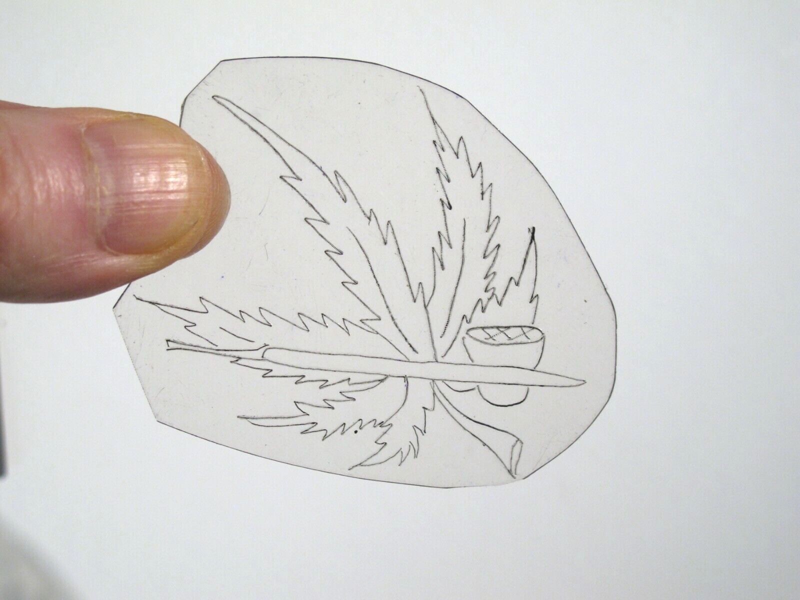 vtg 1960s 1970s Tattoo Flash acetate stencil Weed Pot Leaf and Pipe WEED2