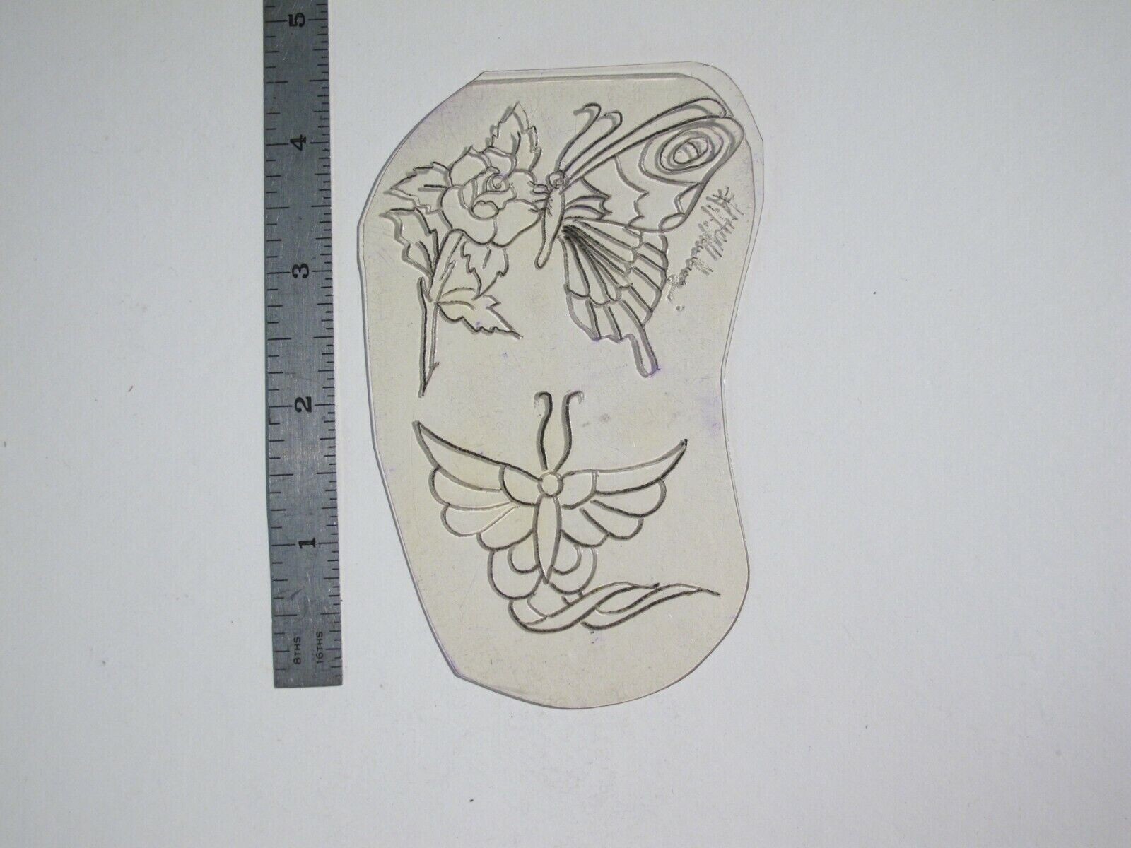 vtg 1960s 1970s Tattoo Flash acetate stencil 2 Butterflies signed v2 BF4