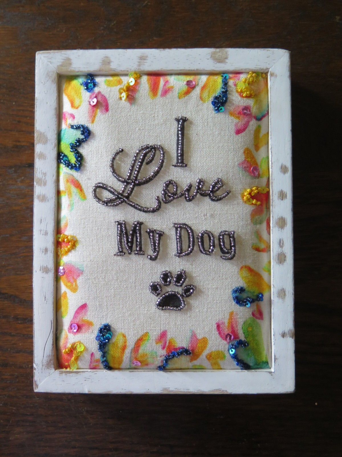 NEW Wood frame I Love My Dog Wall hanging decor BLING Sequins for DOG MOM GIFT