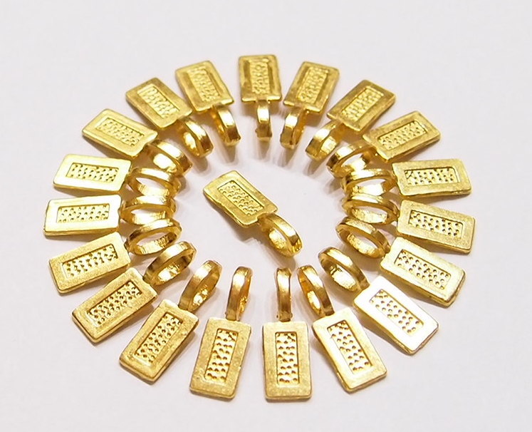 как выглядит 20 Medium Gold Plated Rectangle Glue on Bails Pendants 4 Cabochon 21x7mm фото